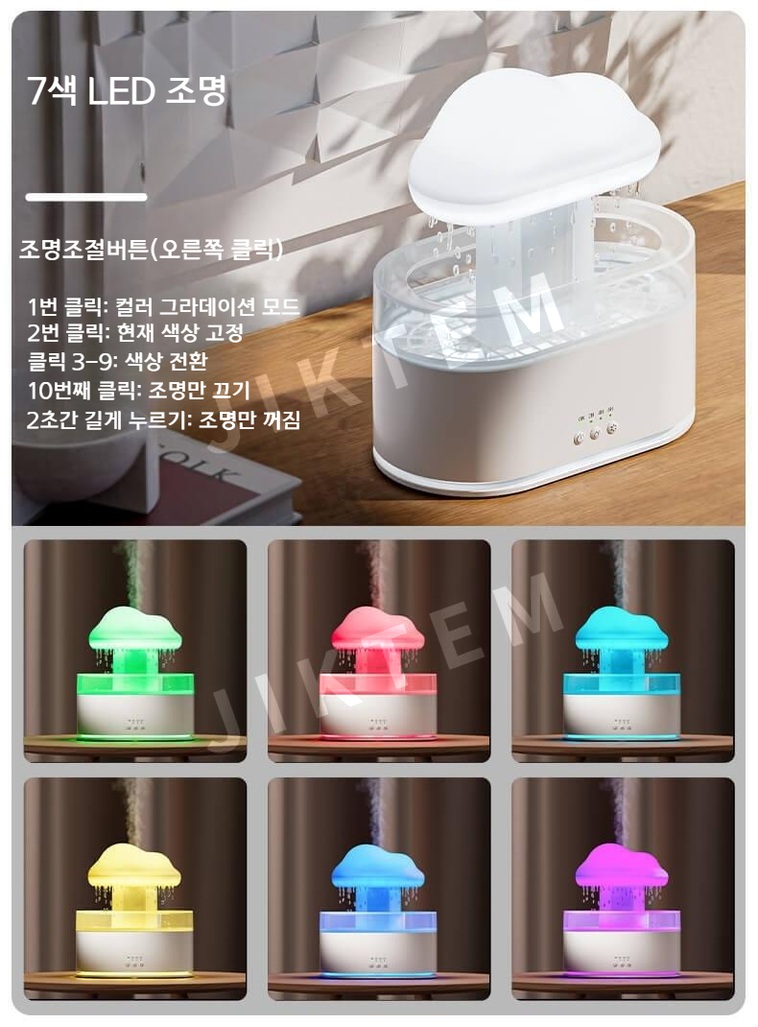 가습기 탁상용 미로 소형 7색 LED 조명 구름 버섯 가습기 JIKTEM BJ4111701