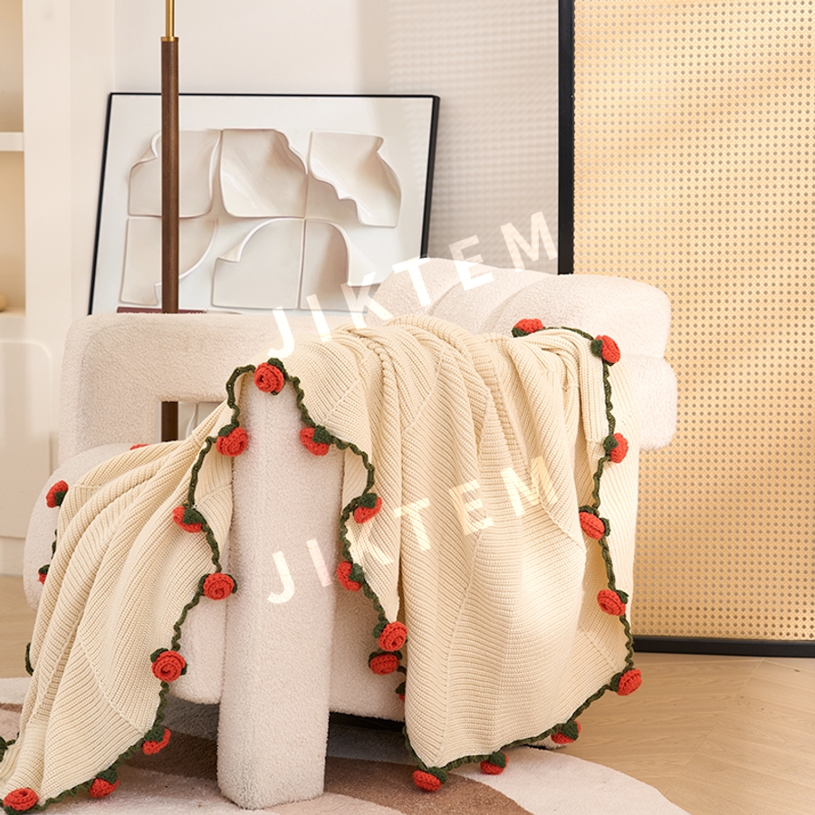 꽃다발 뜨개 담요 니트 블랭킷 숄 소파 학생 담요 JIKTEM WW5092507