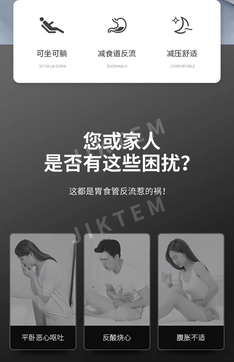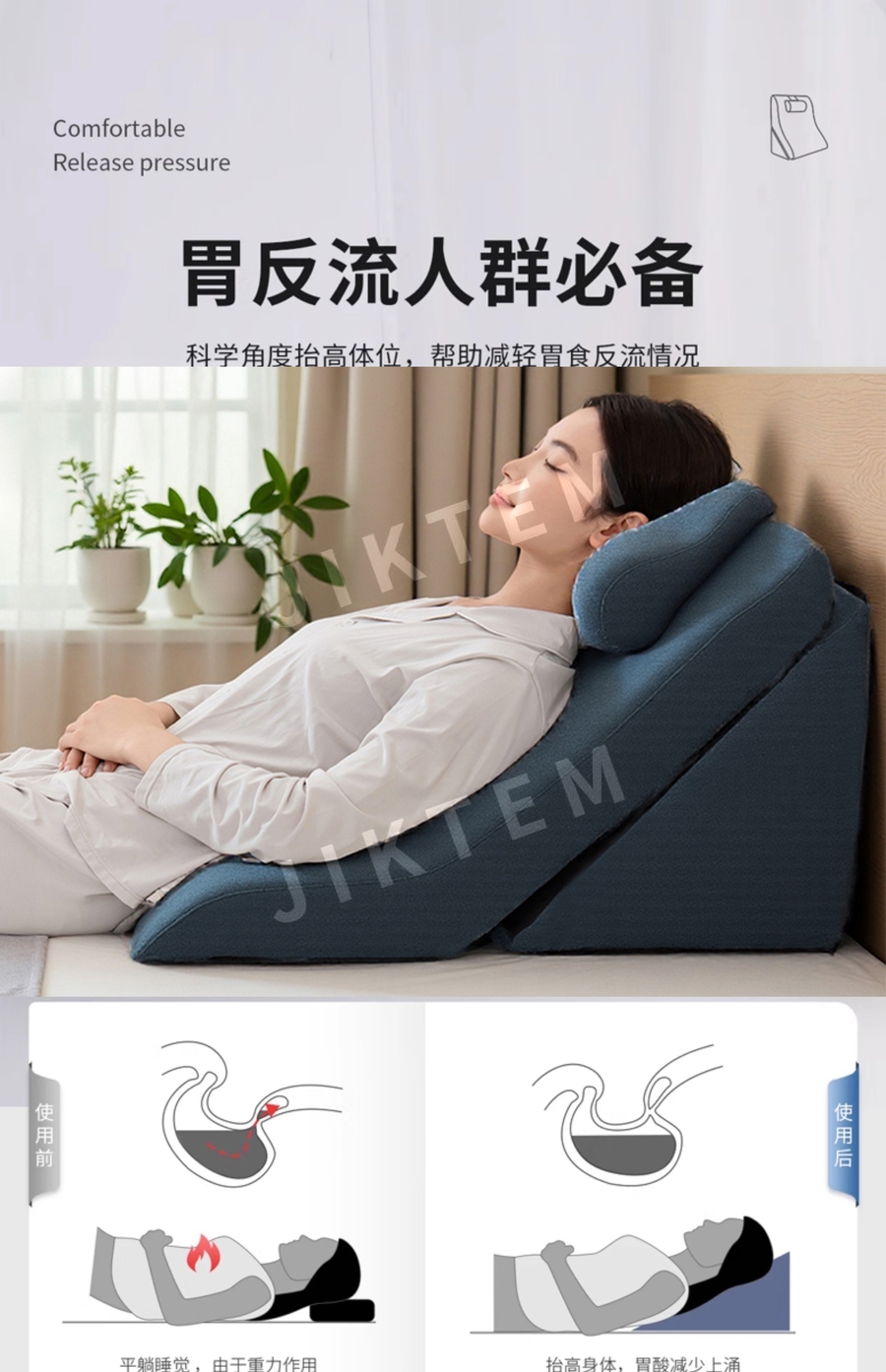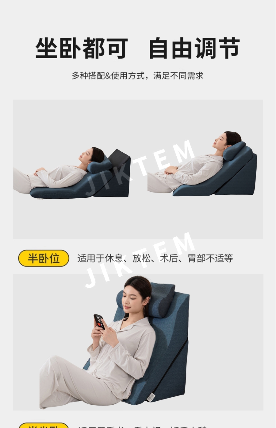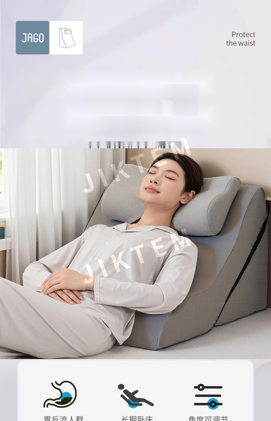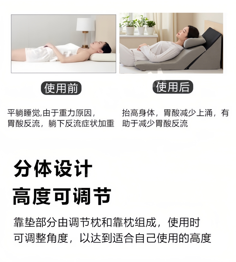 등받이쿠션 침대 허리받침 높이 조절 실버 삼각등받이 베개 JIKTEM BW5100910