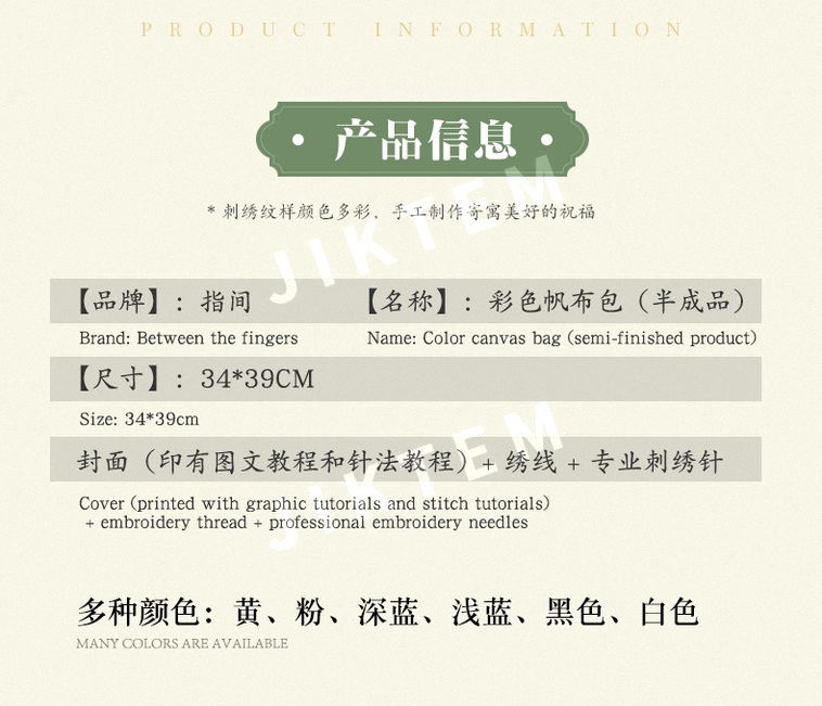 리본 십자수 DIY 캔버스 가방 취미생활 자수 가방 JIKTEM BW4072505