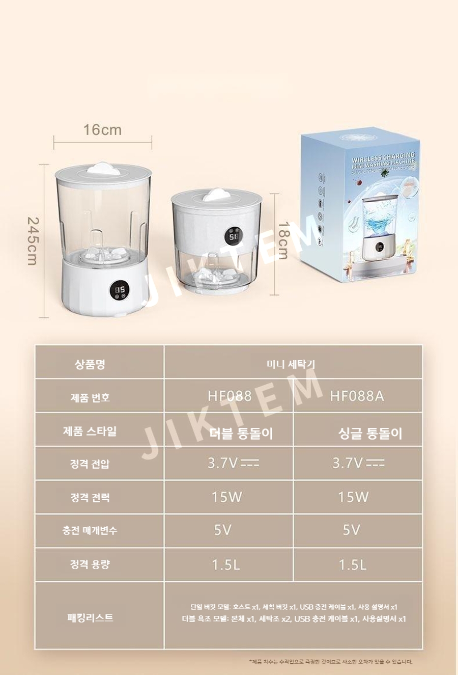 무선 미니 세탁기 충전식 속옷 양말 소형 세탁기 여행 휴대용 JIKTEM BW5071403