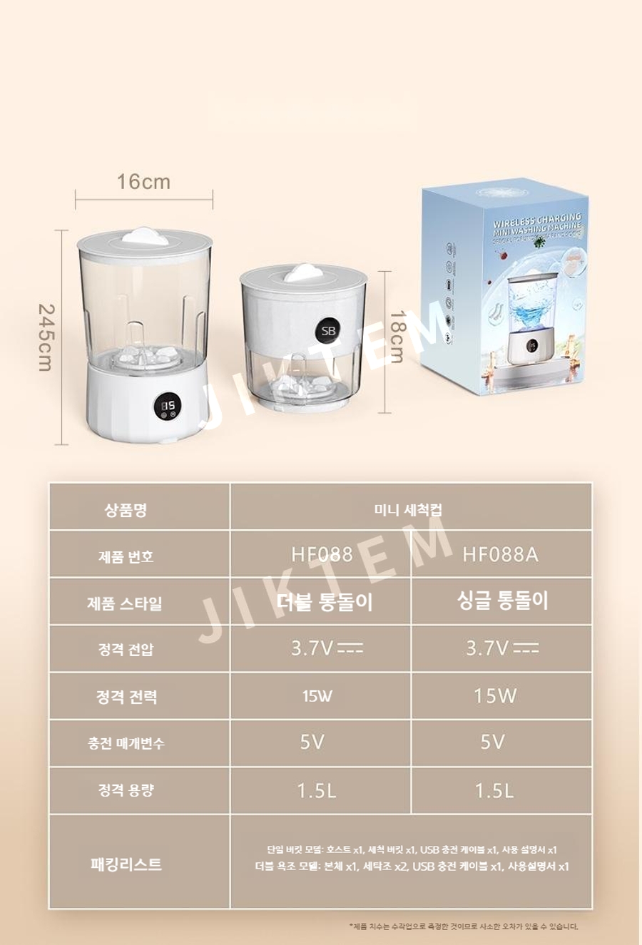 무선 미니 세탁기 2L 충전식 속옷 양말 세탁기 휴대용 JIKTEM BW5071401