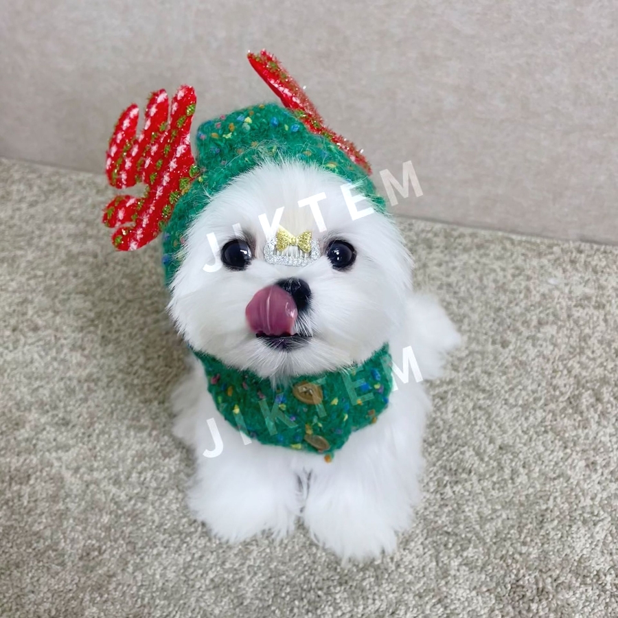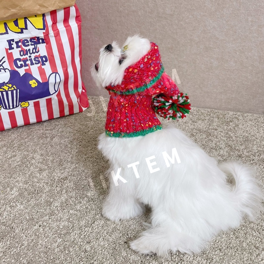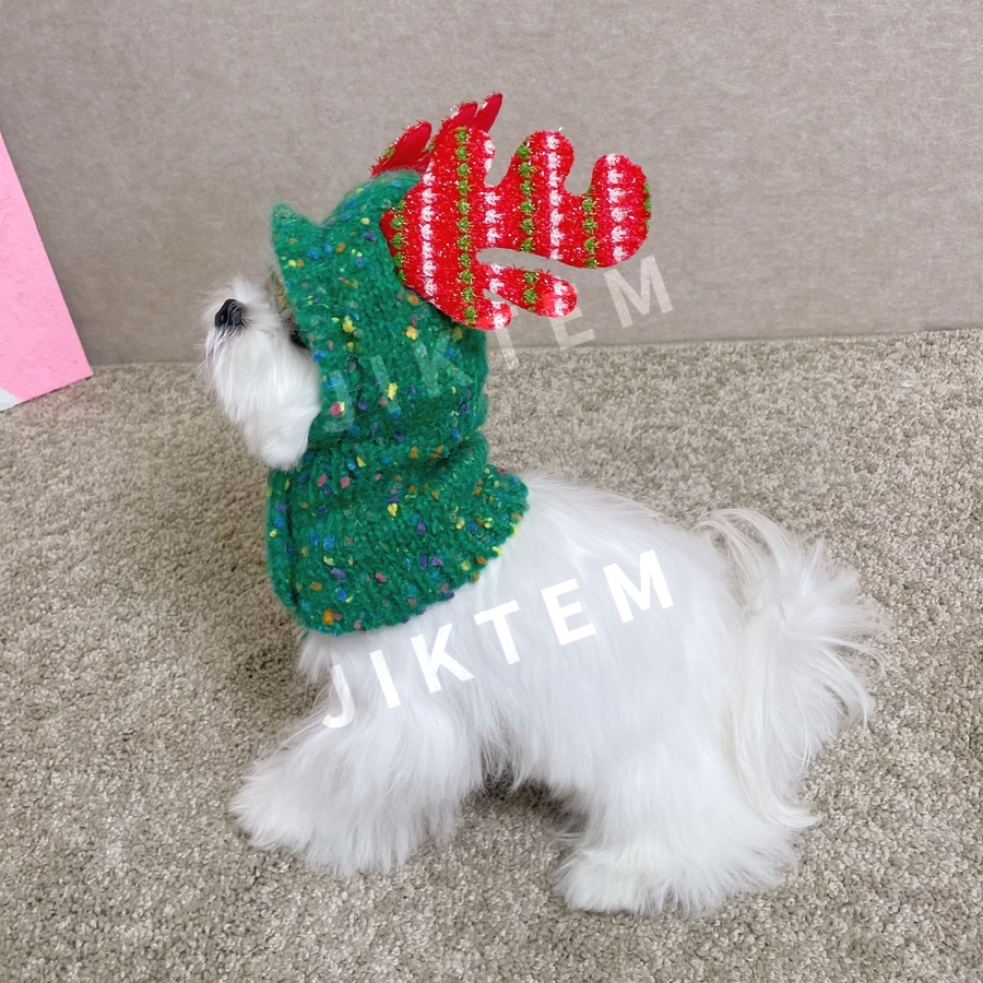 반려견 크리스마스 뜨게 모자 방한 방울 귀도리 JIKTEM WW6010701
