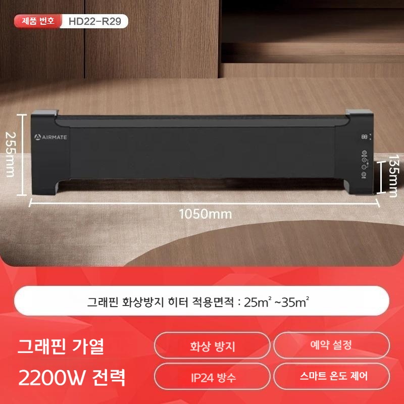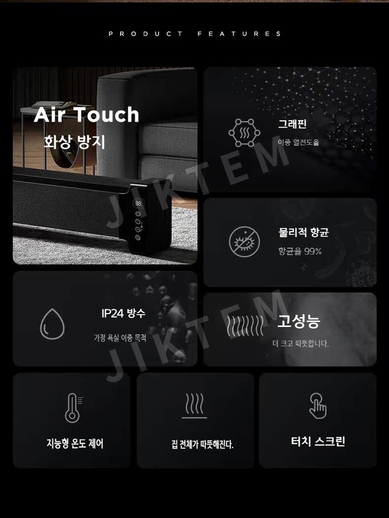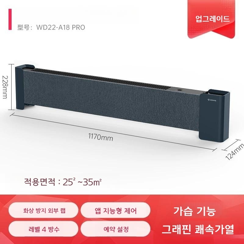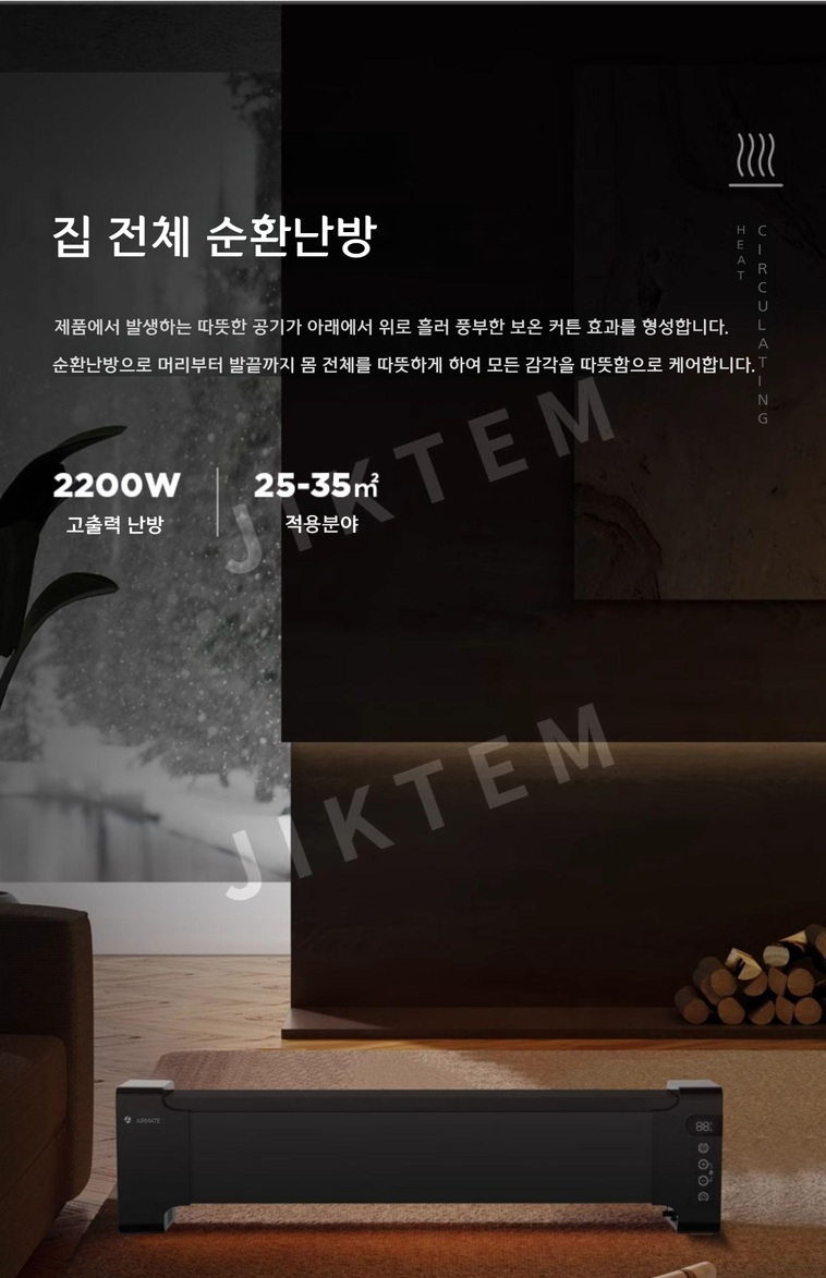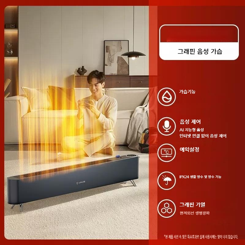 베이스보드 히터 가습기 겸용 그래핀 전기 난로 사무실 욕실 난방기 JIKTEM WW4110520