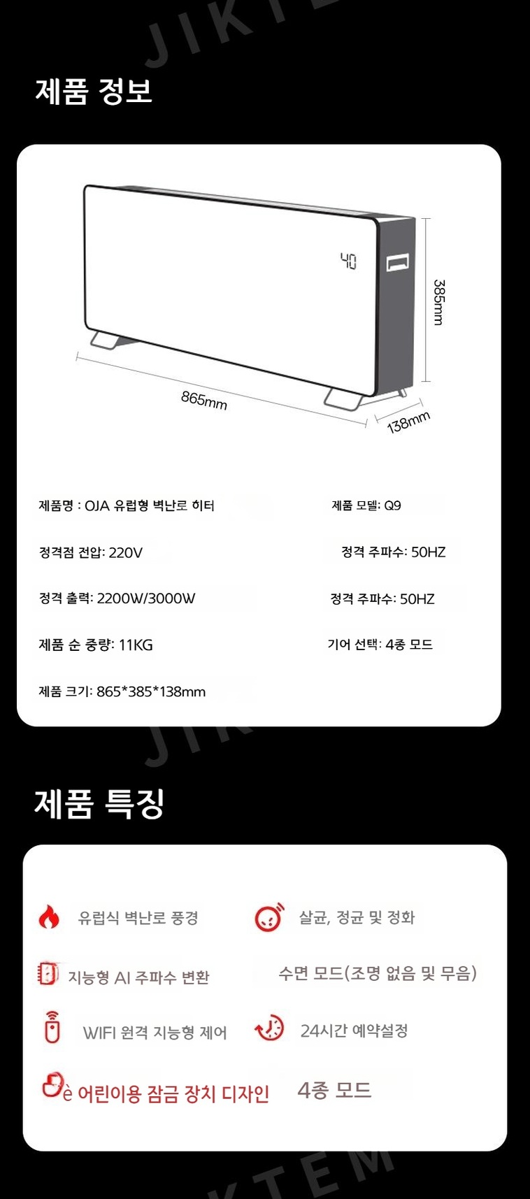 베이스보드 히터 그래핀 가정용 사무실용 전기난로 온풍기 JIKTEM WW4110513
