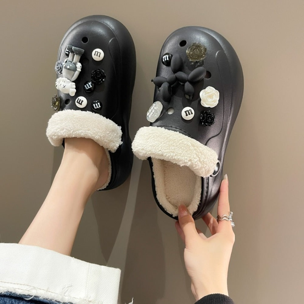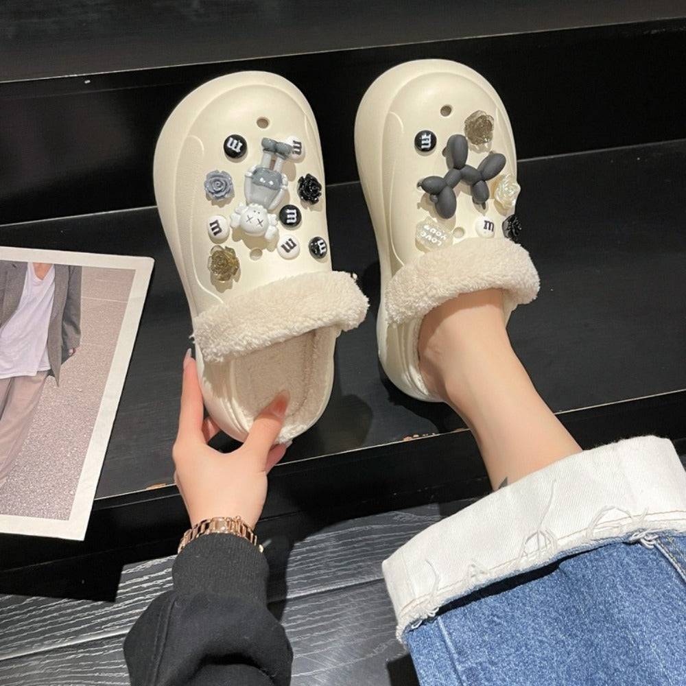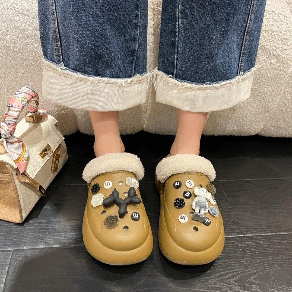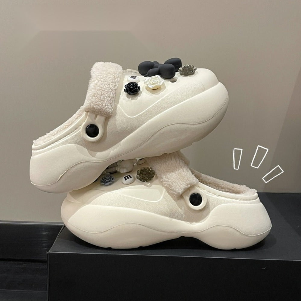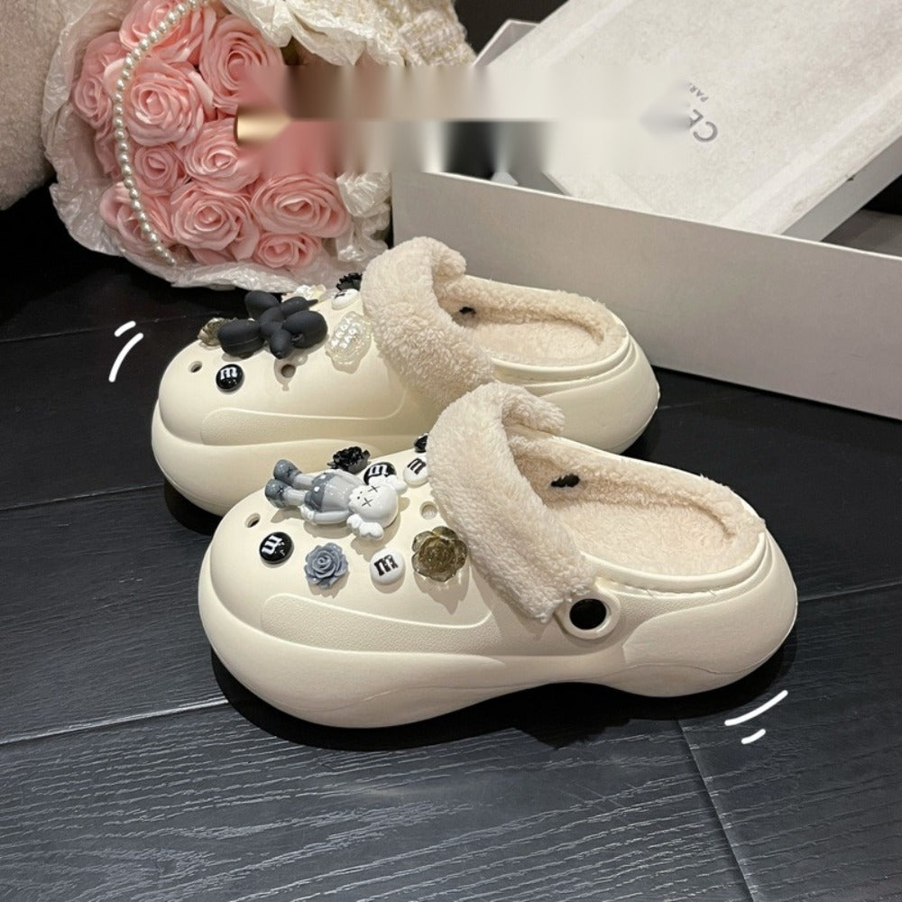 사무실 털슬리퍼 발편한 여성 겨울 하프 플라워 신발 BY2102615