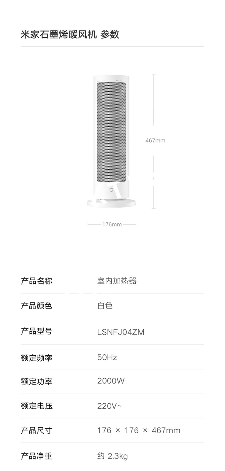 샤오미 미지아 그래핀 전기 난로 히터 온풍기 LSNFJ04ZM JIKTEM WW4112715