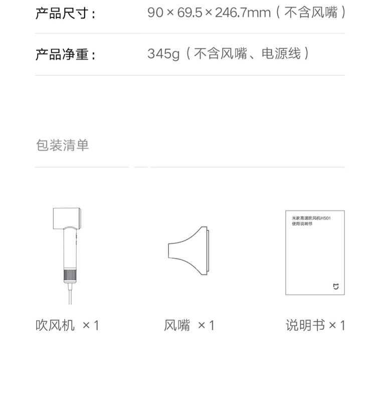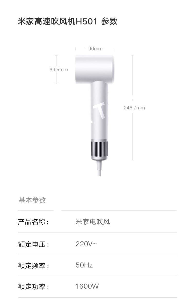 샤오미 미지아 헤어 드라이기 고속 H501 JIKTEM WW4121801