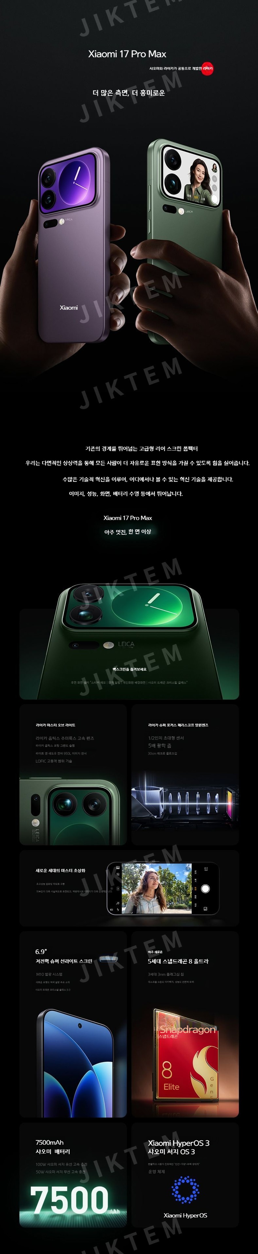 샤오미 17 Pro Max 12+512GB 스마트폰 후면디스플레이 7500mAh