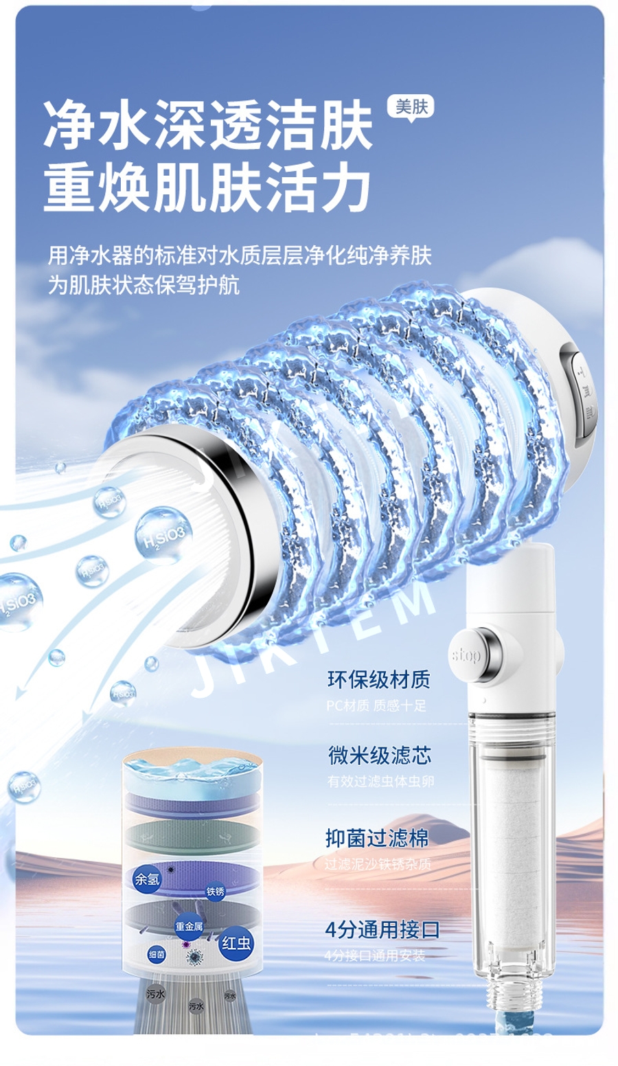 샤워기 헤드 수압상승 3P 정수필터 3단조절 JIKTEM WW5092703