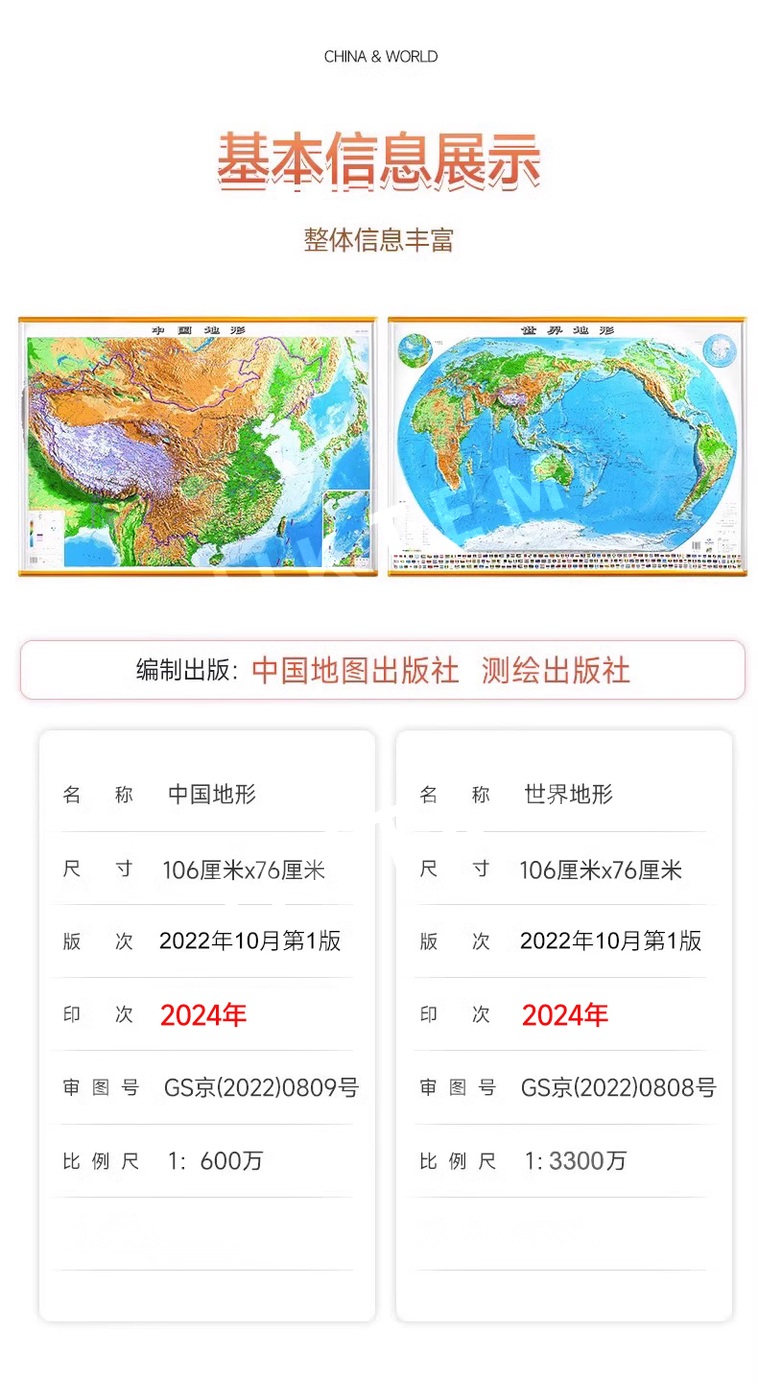 세계지도+중국지도 3D 입체 지도 JIKTEM BJ4090604