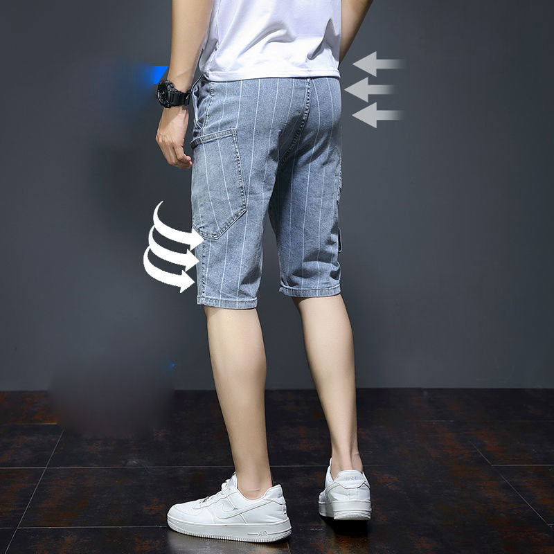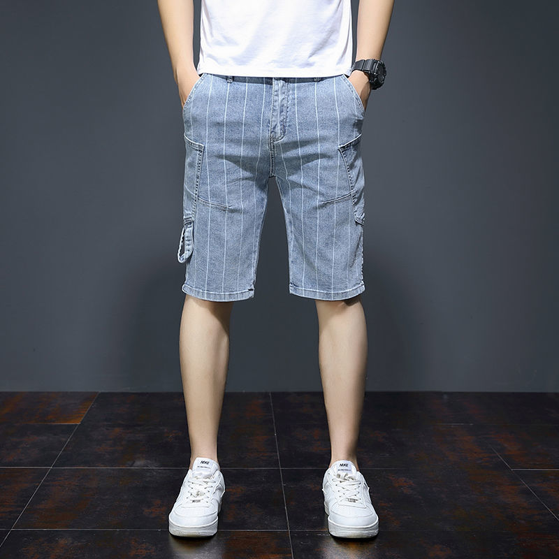 스트라이프 청데님 반바지 남성 5부 팬츠 Q2062016