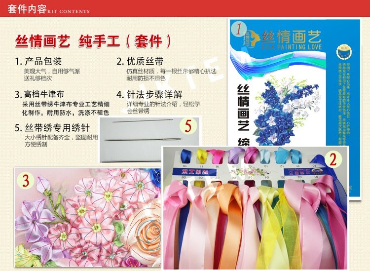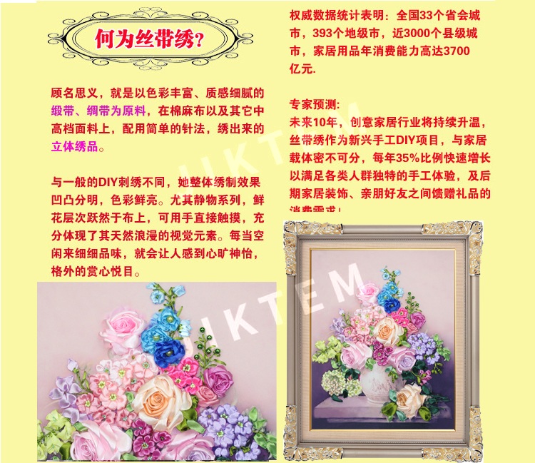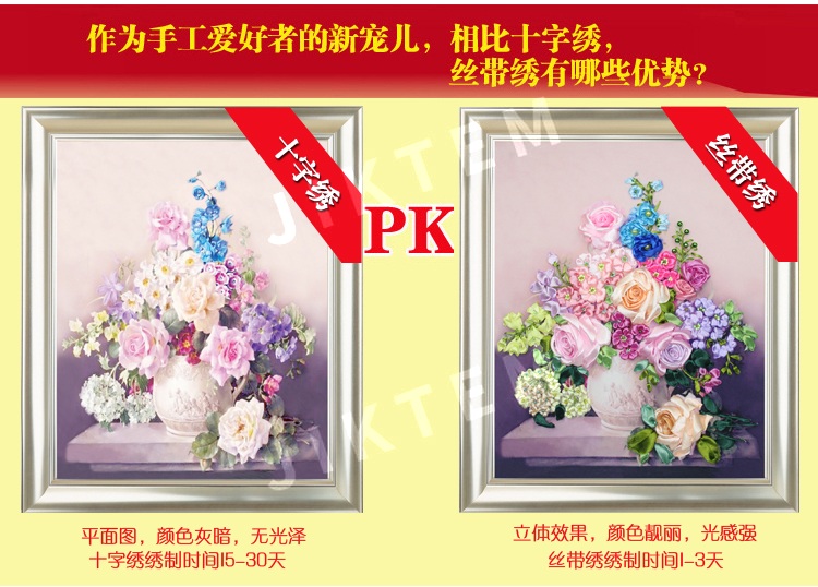 십자수 실크 리본 DIY 취미생활 인테리어 소품 장미 플라워 JIKTEM BW4072501