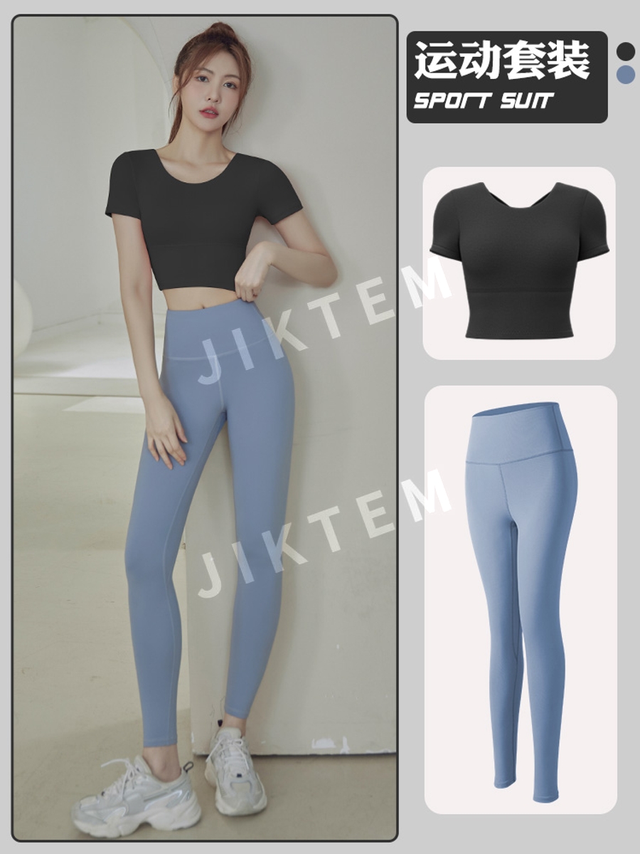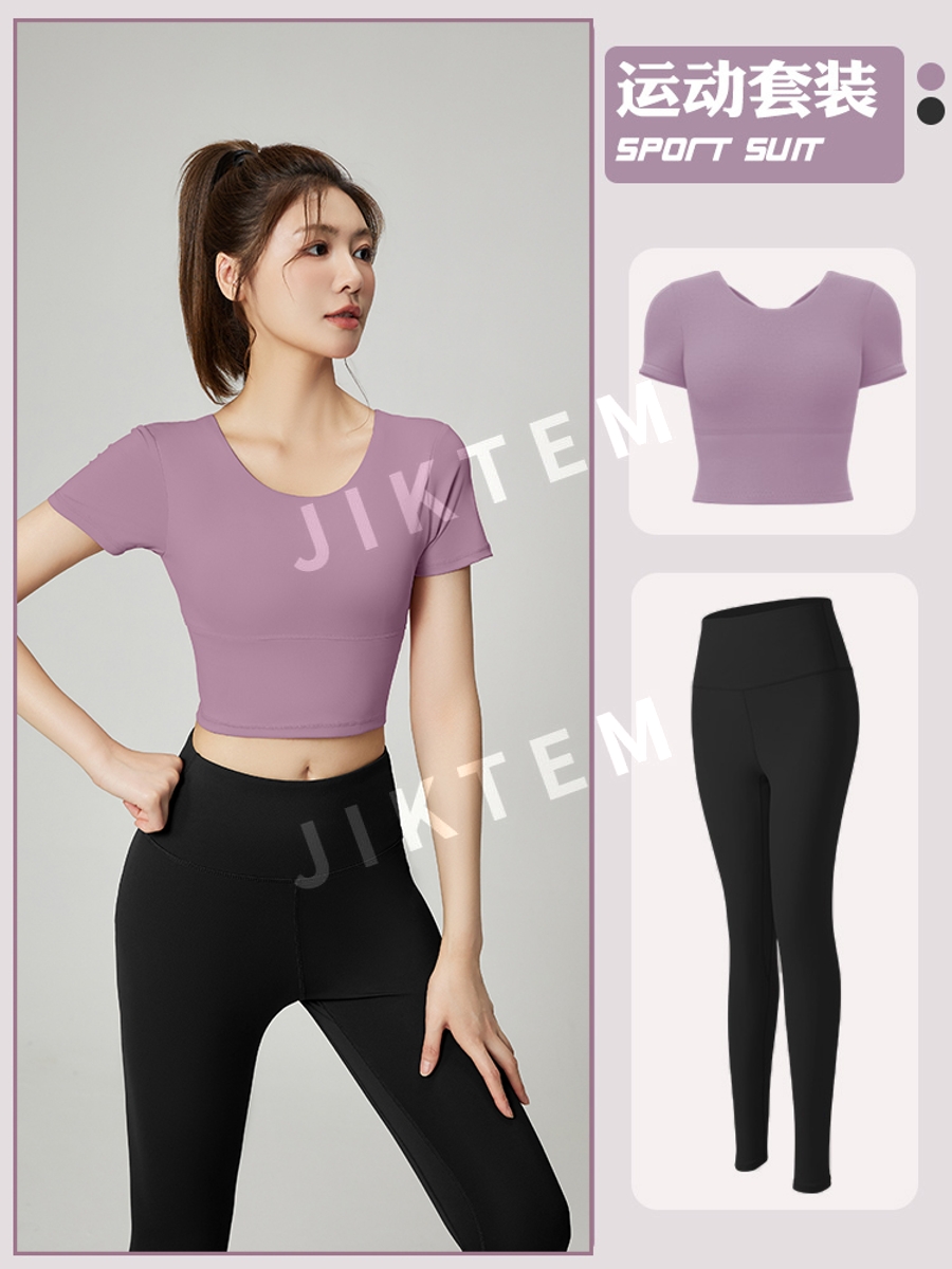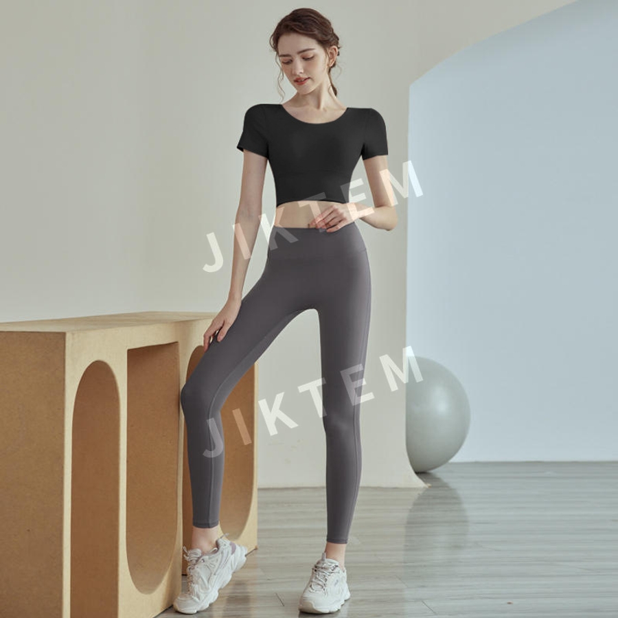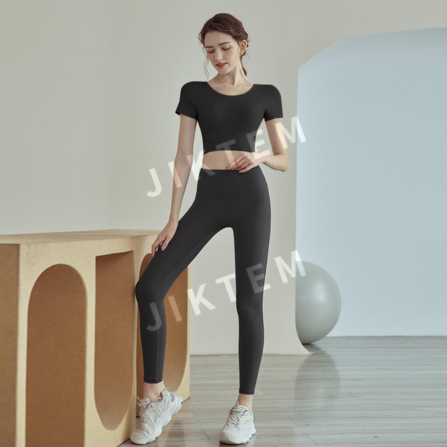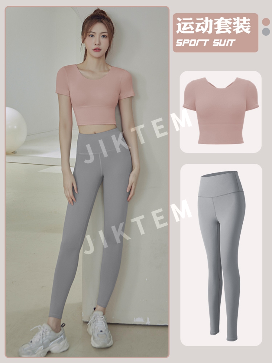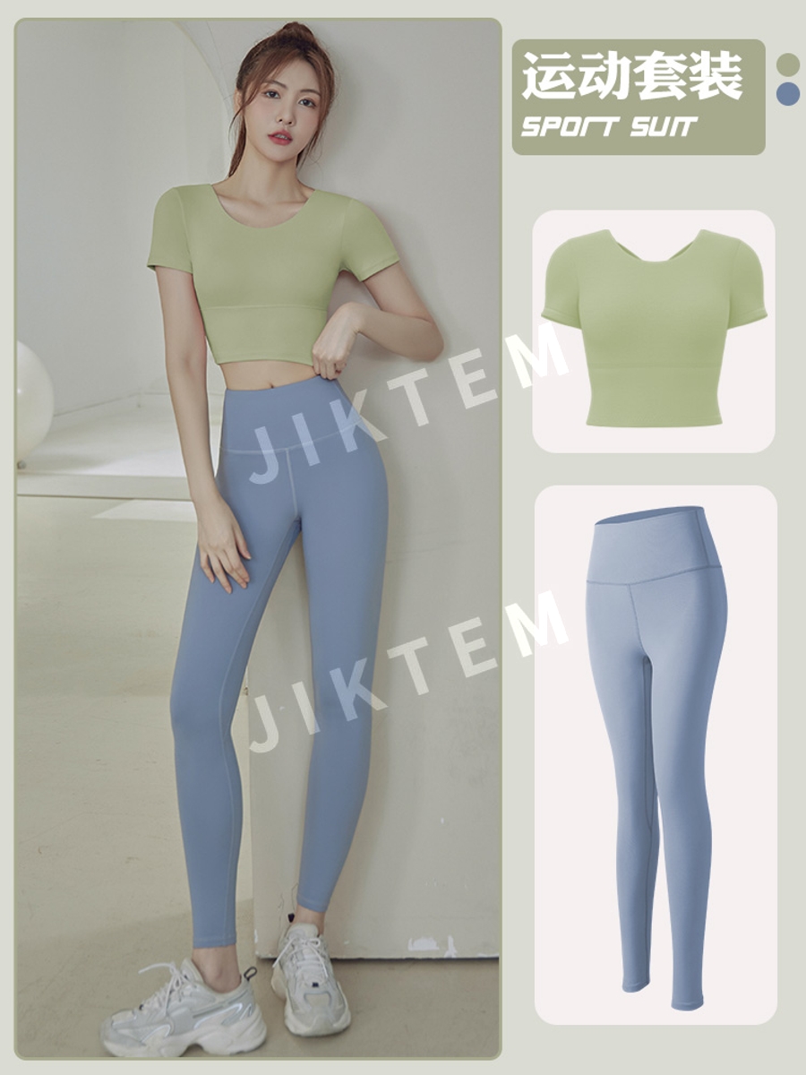 여성 요가복 세트 반팔 상의 트레이닝복 필라테스복 JIKTEM WW5120908