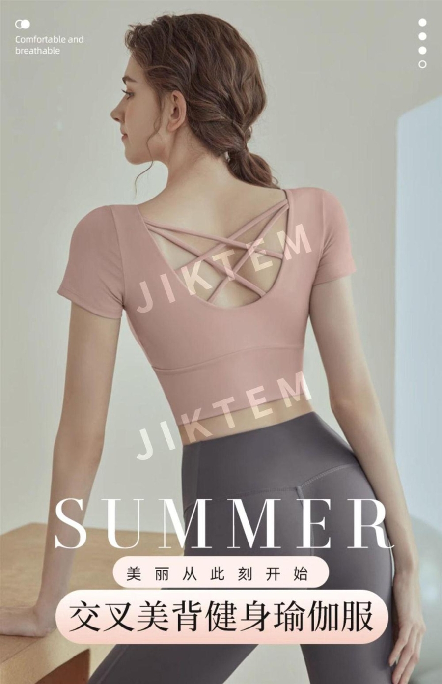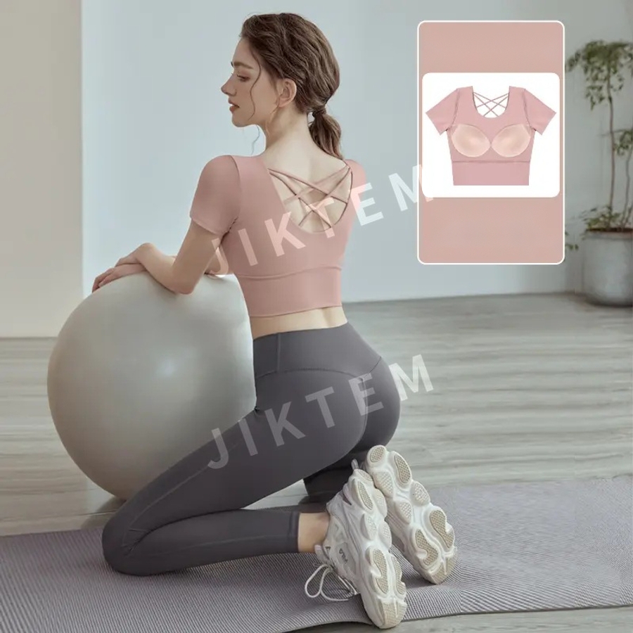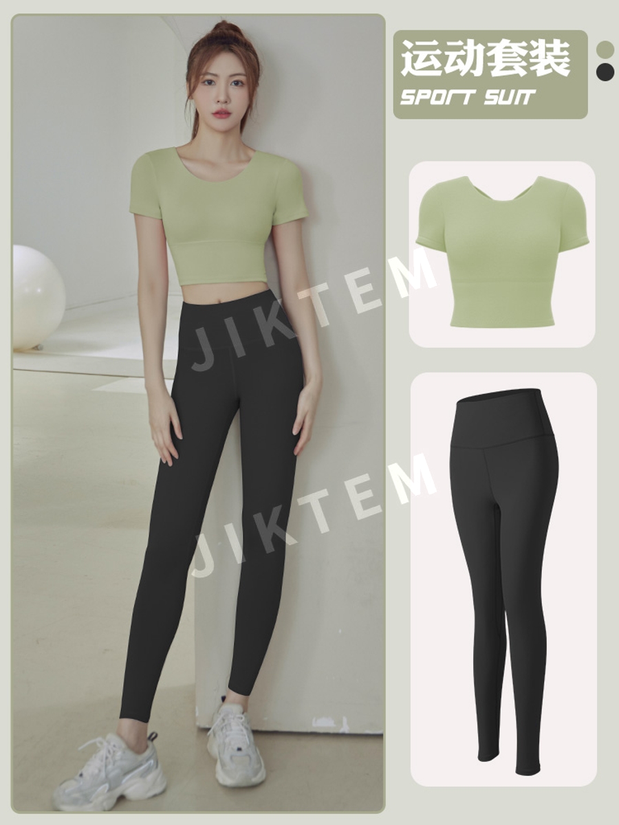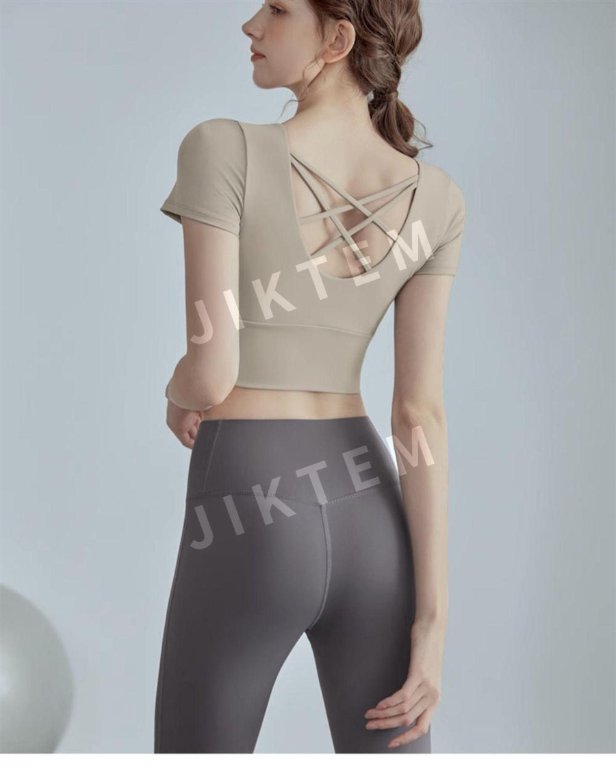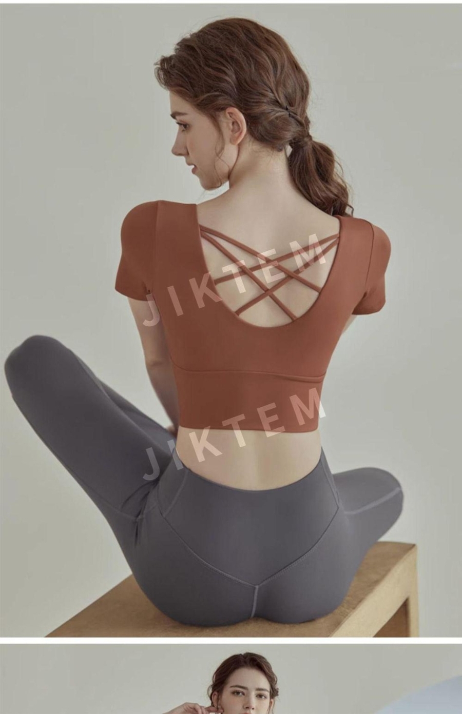 여성 요가복 세트 반팔 상의 트레이닝복 필라테스복 JIKTEM WW5120908