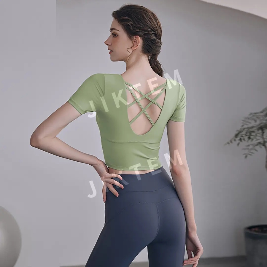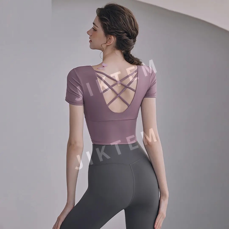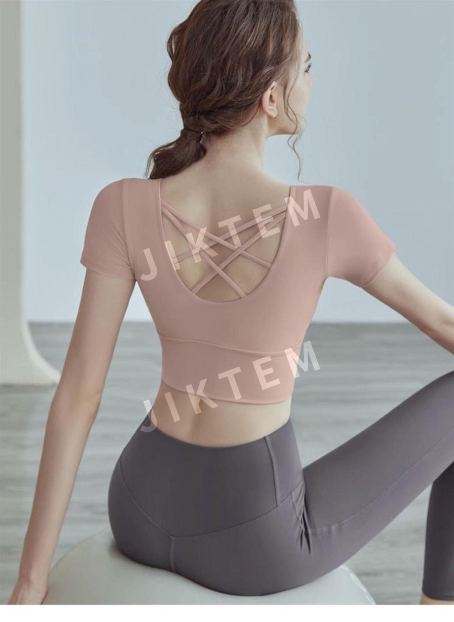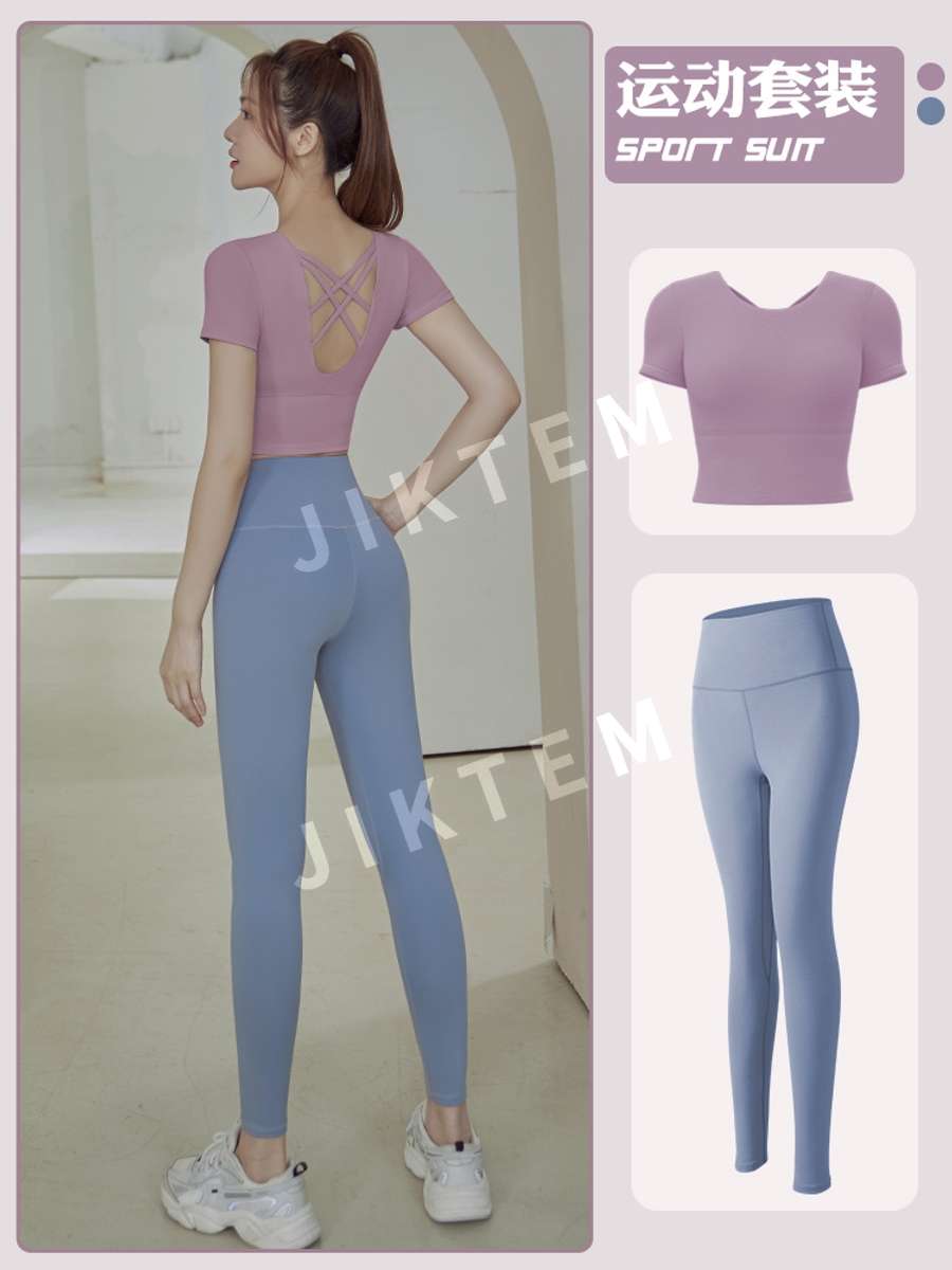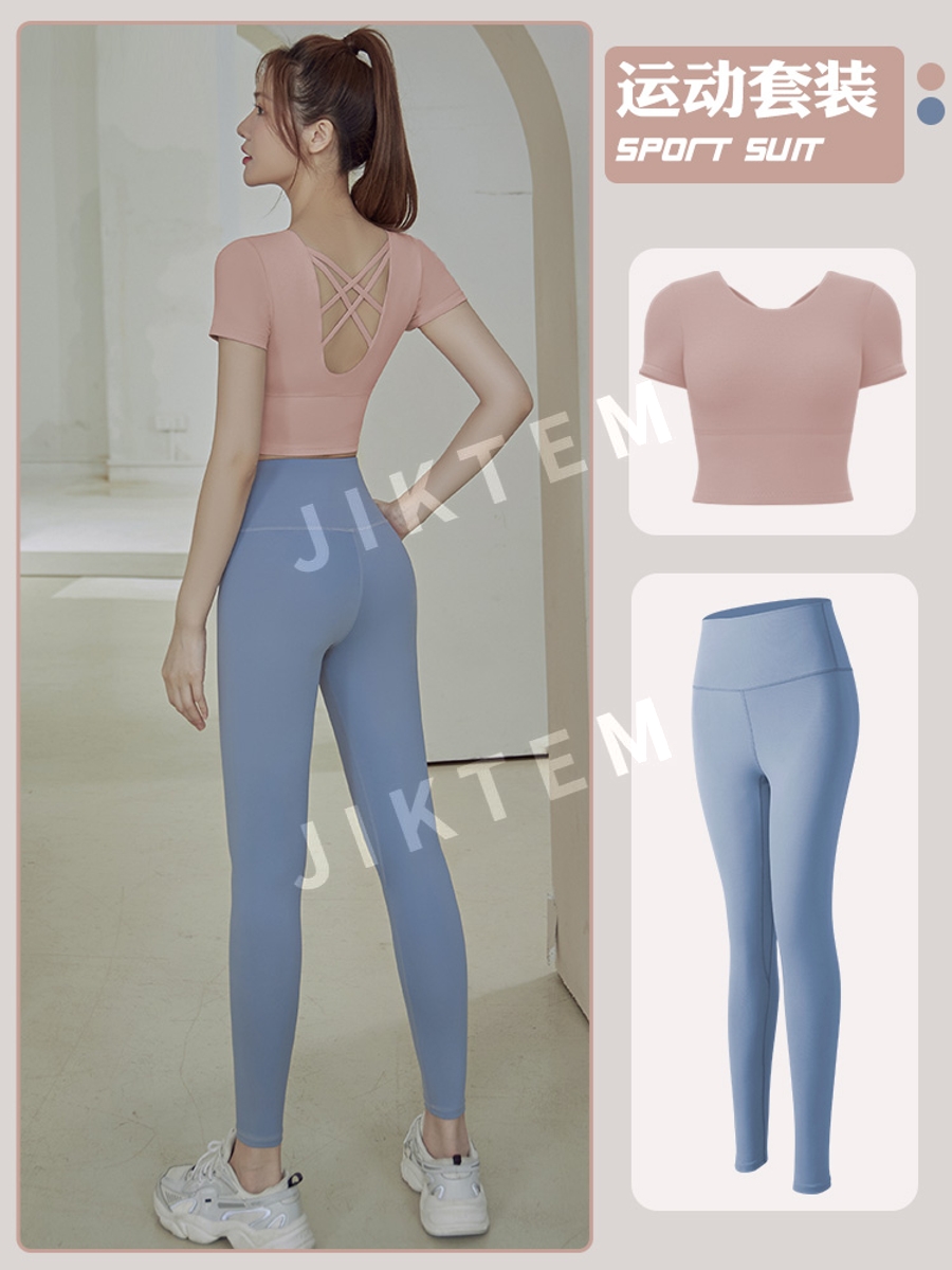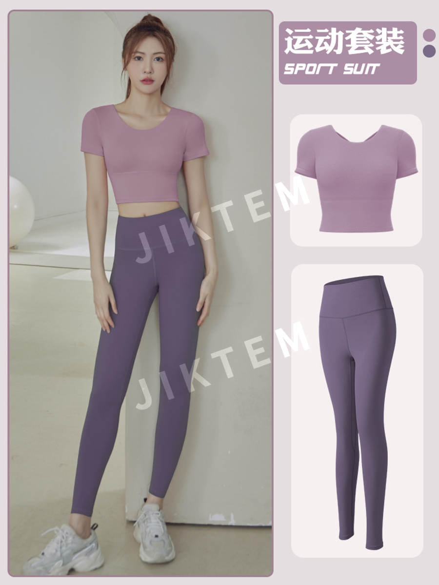 여성 요가복 세트 반팔 상의 트레이닝복 필라테스복 JIKTEM WW5120908