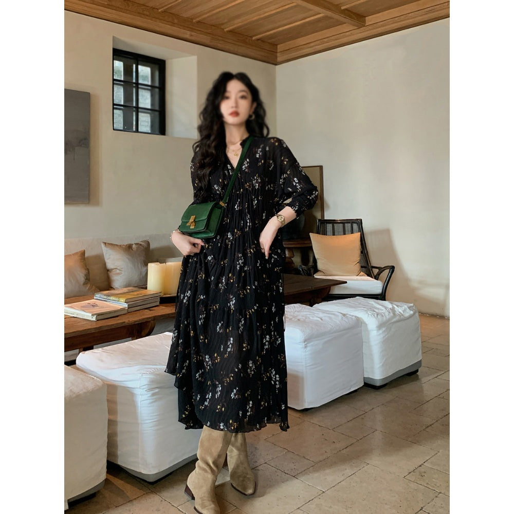 원피스 결혼식 하객룩 플라워 휴양지 루즈핏 쉬폰 롱 스커트 BQ3021805