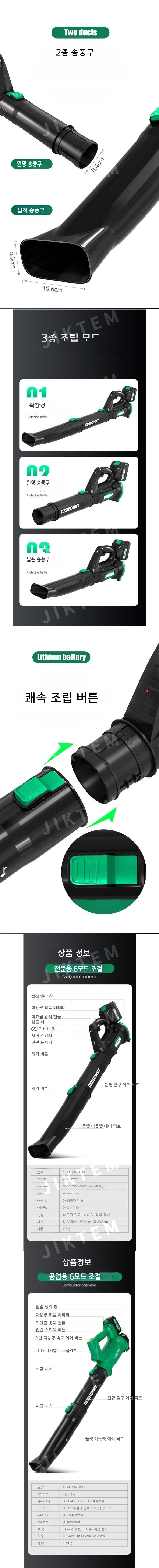 제설송풍기 충전식 강력 낙엽 제설 폭풍 청소기 JIKTEM WJ4103101