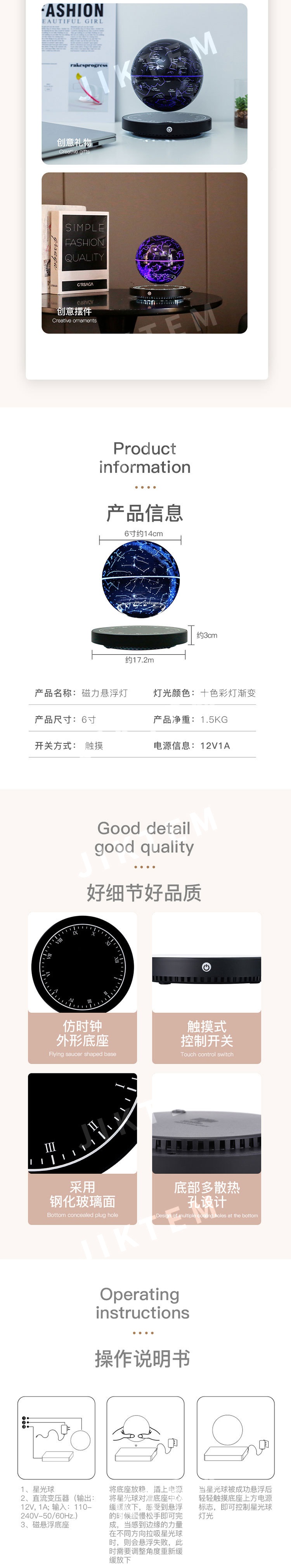 지구본 별자리 스탠드 조명 장식품 자기부상 360도회전 JIKTEM BJ4090602