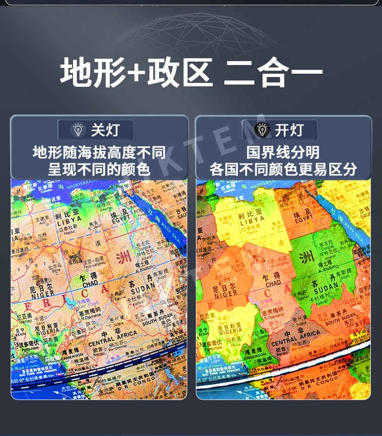 지구본 3D 세계지도 장식품 충전식 스탠드 조명 JIKTEM BJ4090603