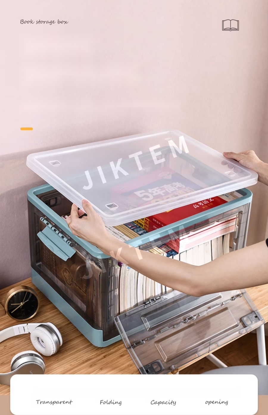 책장 서랍장 접이식 소품 수납함 보관함 투명 이동식 JIKTEM BW5080306