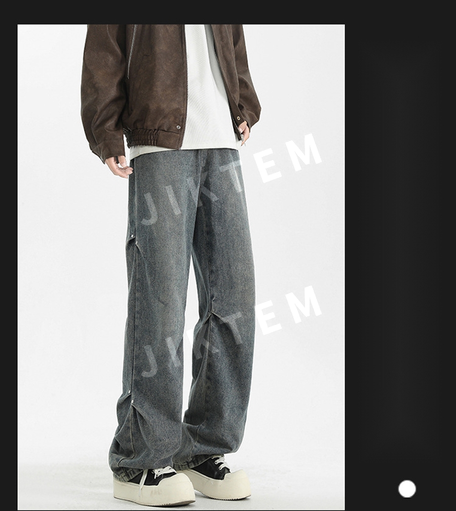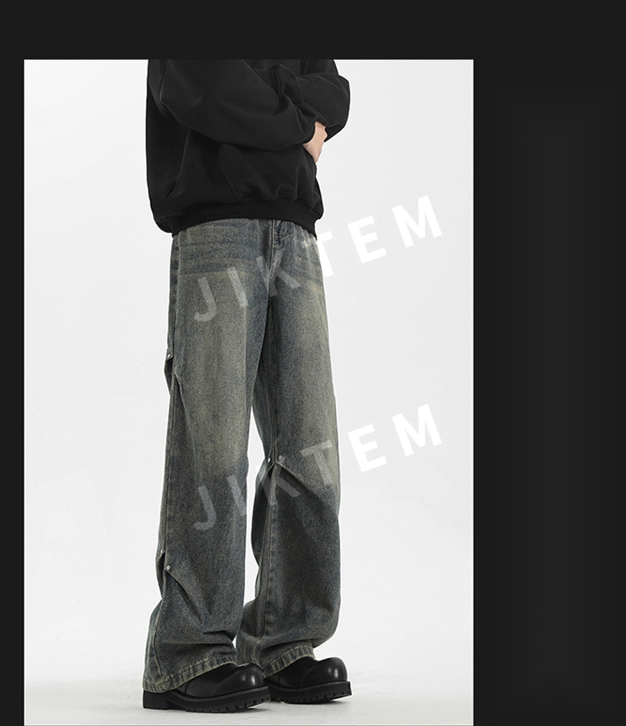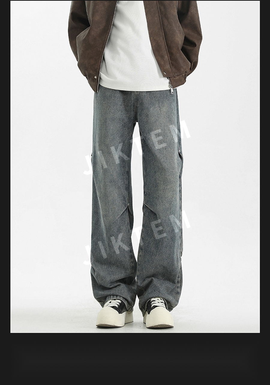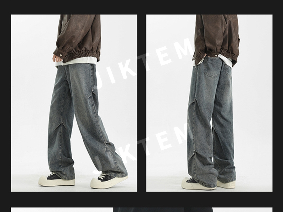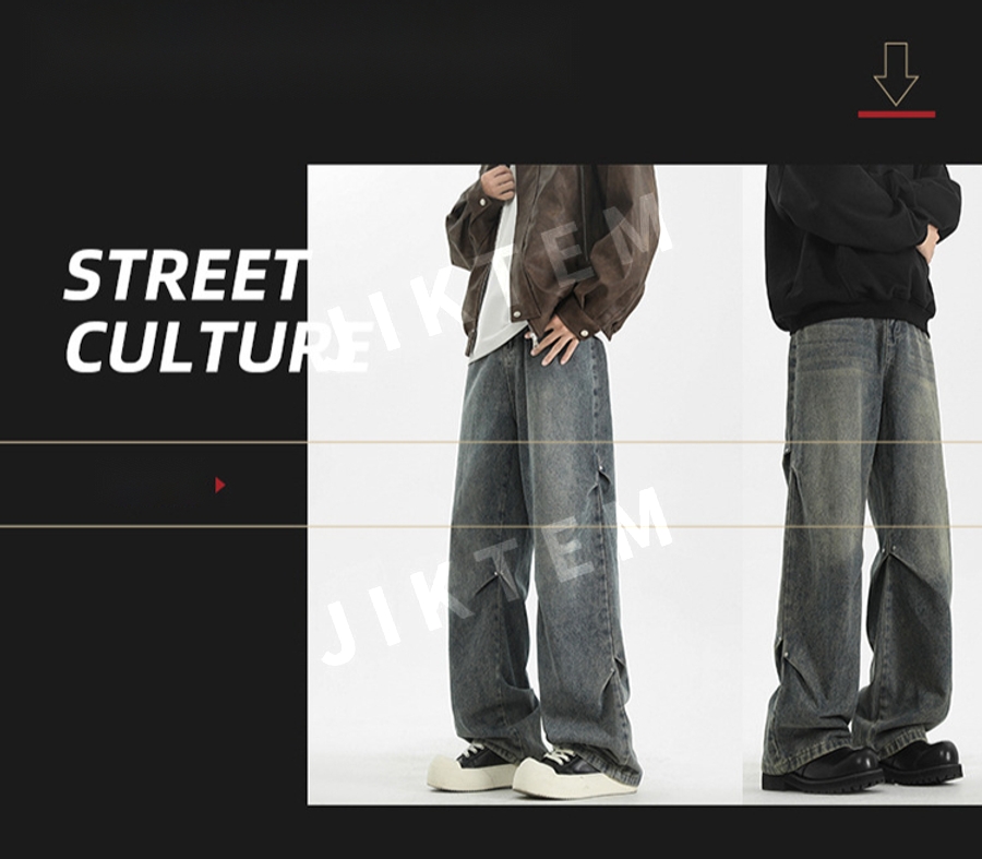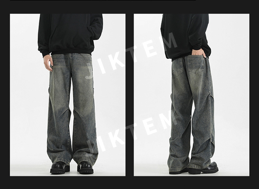 클린핏 와이드 팬츠 입체 주름 복고풍 청바지 데님팬츠 JIKTEM WW5083012
