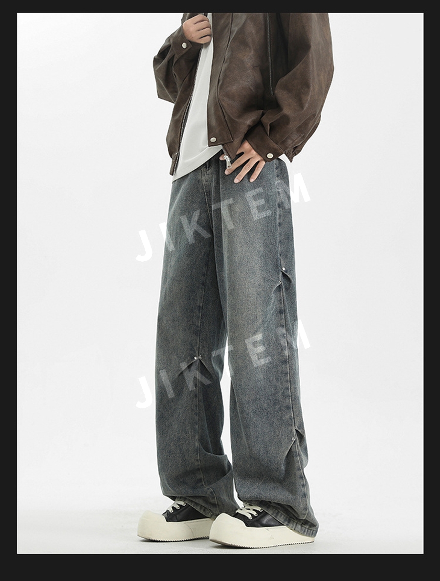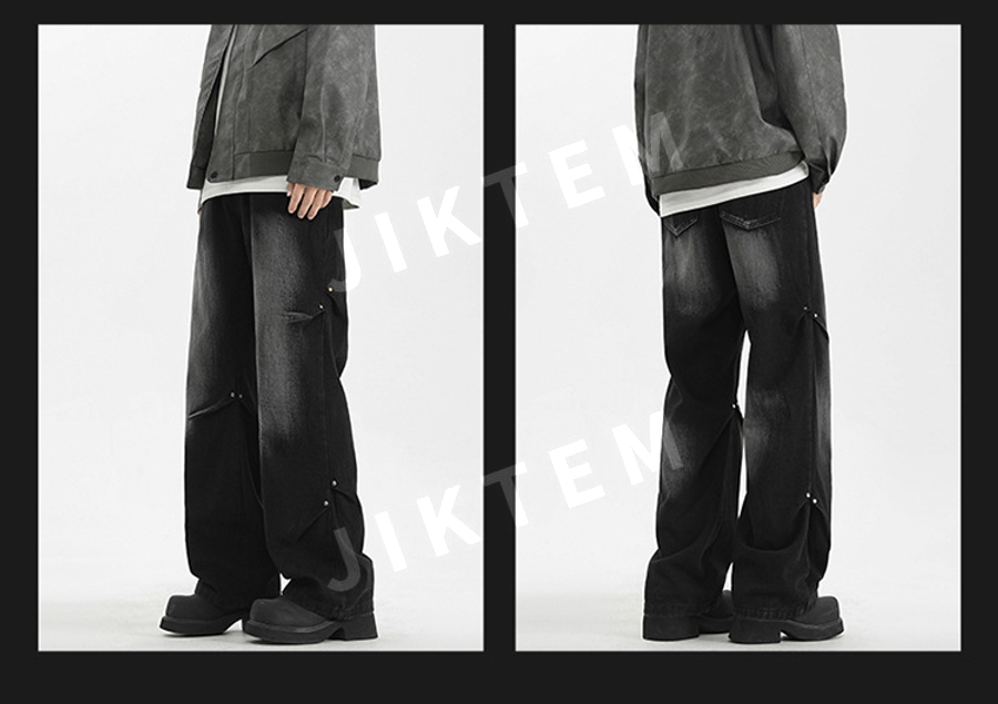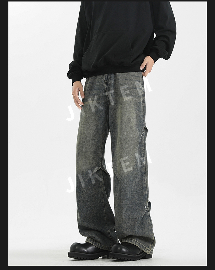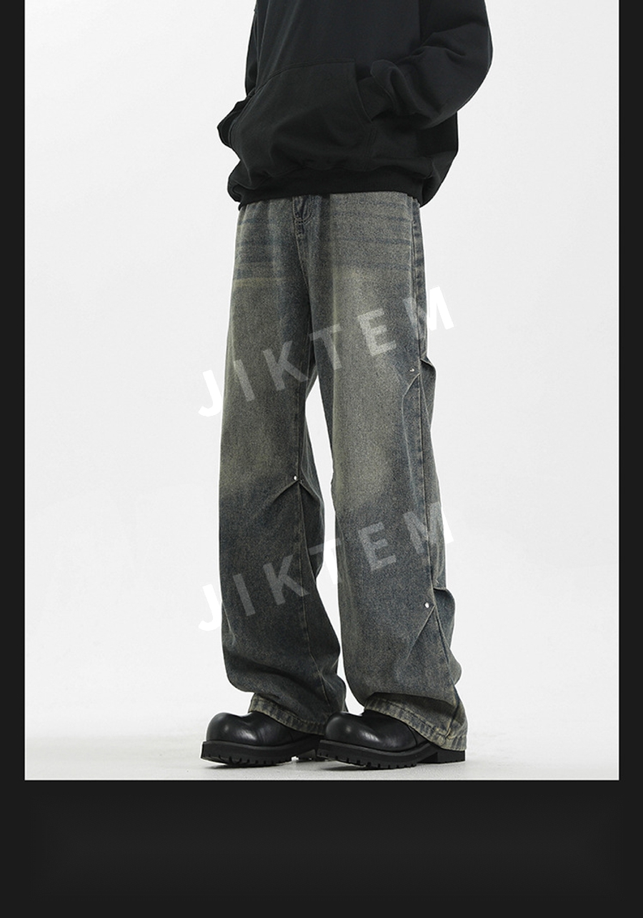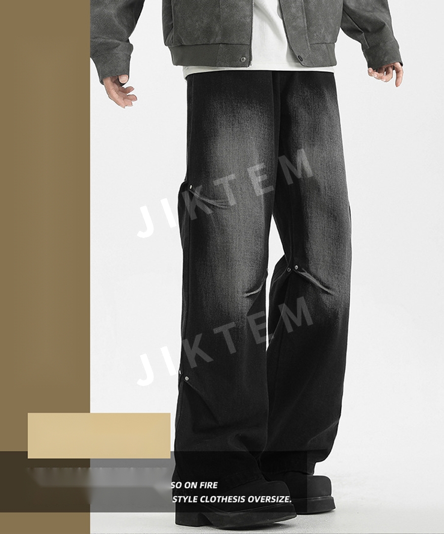 클린핏 와이드 팬츠 입체 주름 복고풍 청바지 데님팬츠 JIKTEM WW5083012