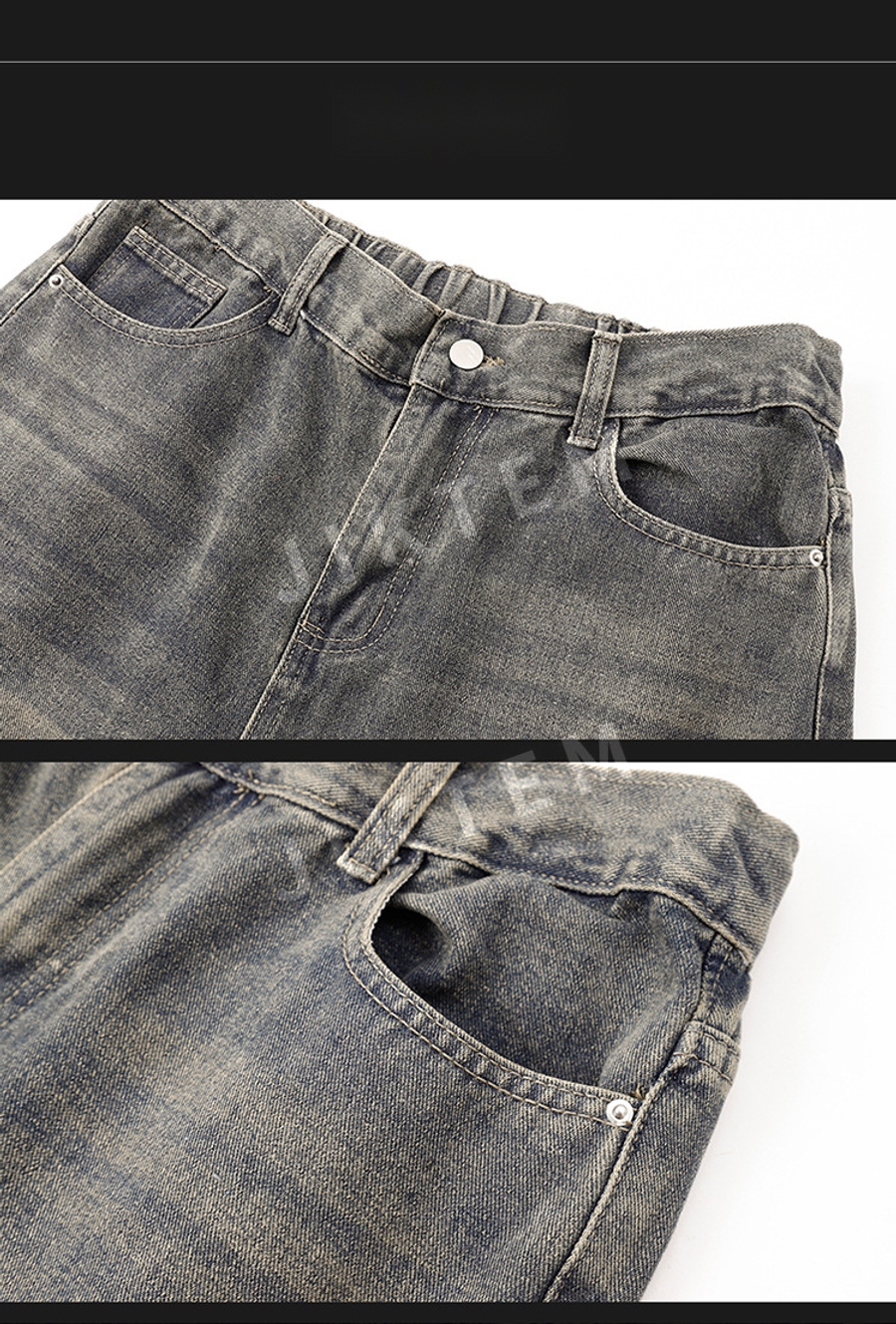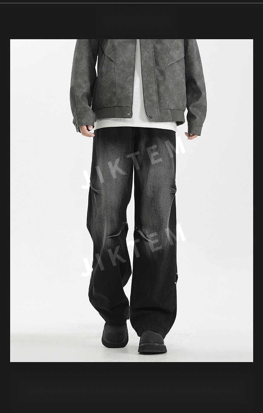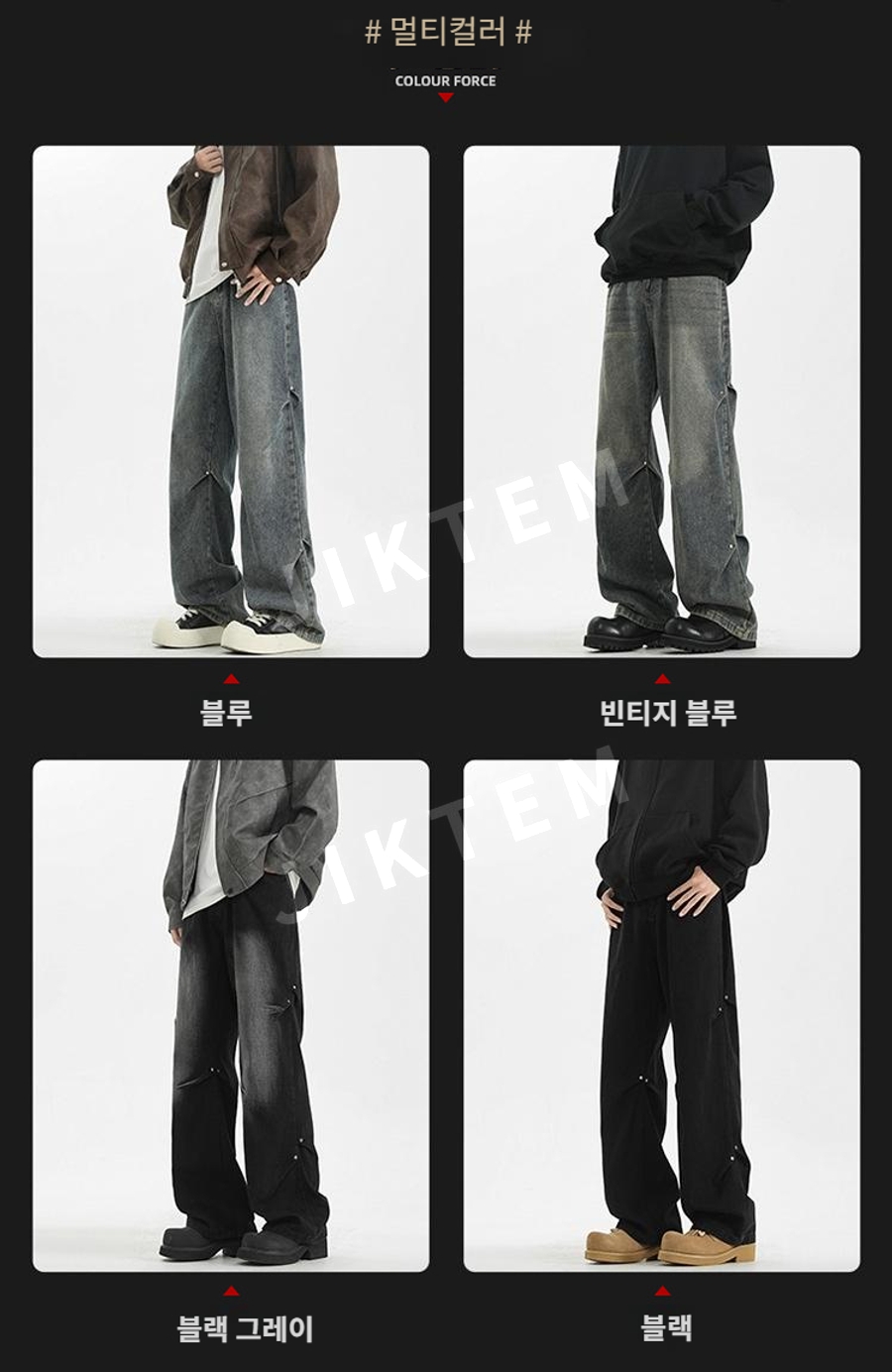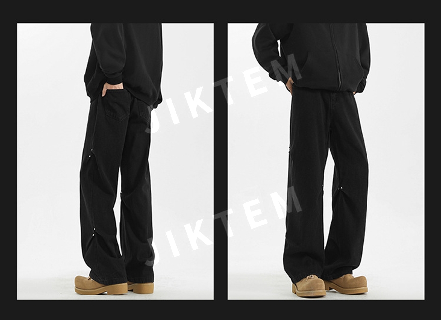 클린핏 와이드 팬츠 입체 주름 복고풍 청바지 데님팬츠 JIKTEM WW5083012