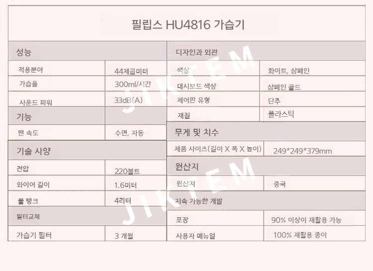 필립스 가습기 간편세척 통세척 나노 클라우드 4L JIKTEM BJ4111704