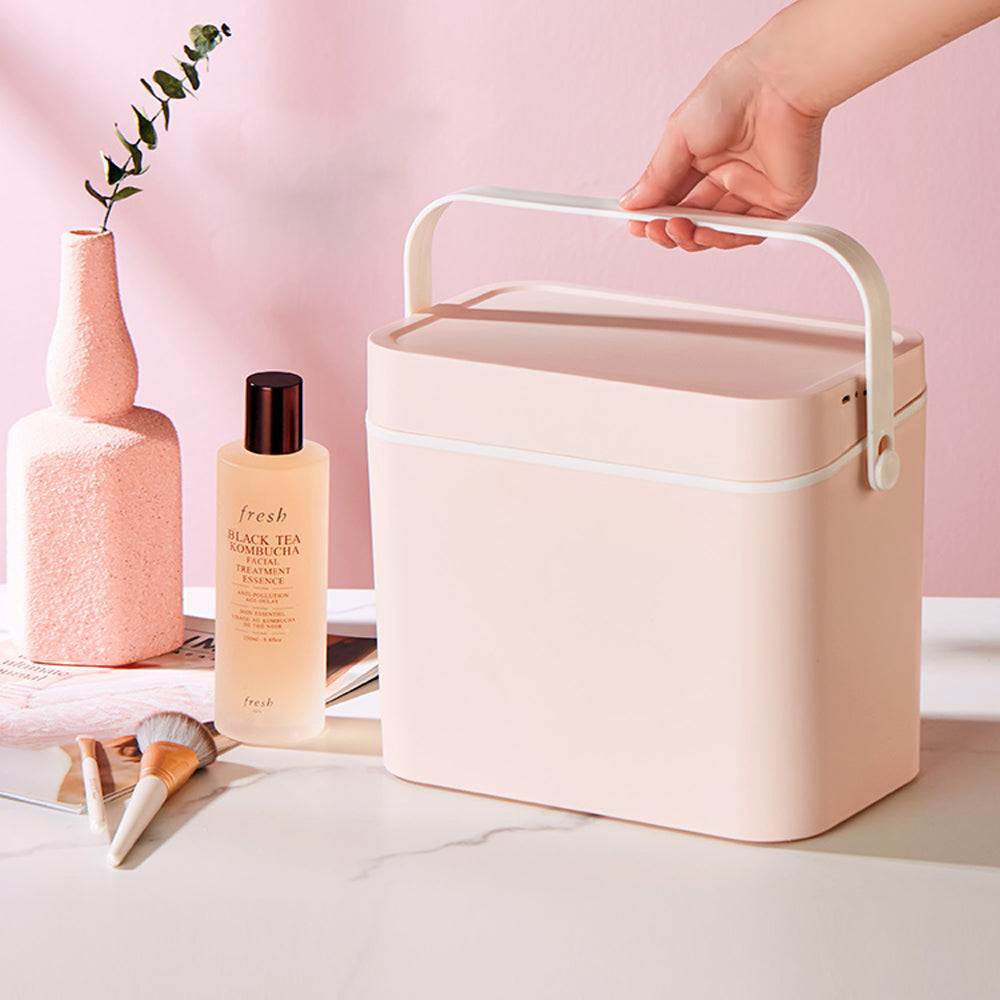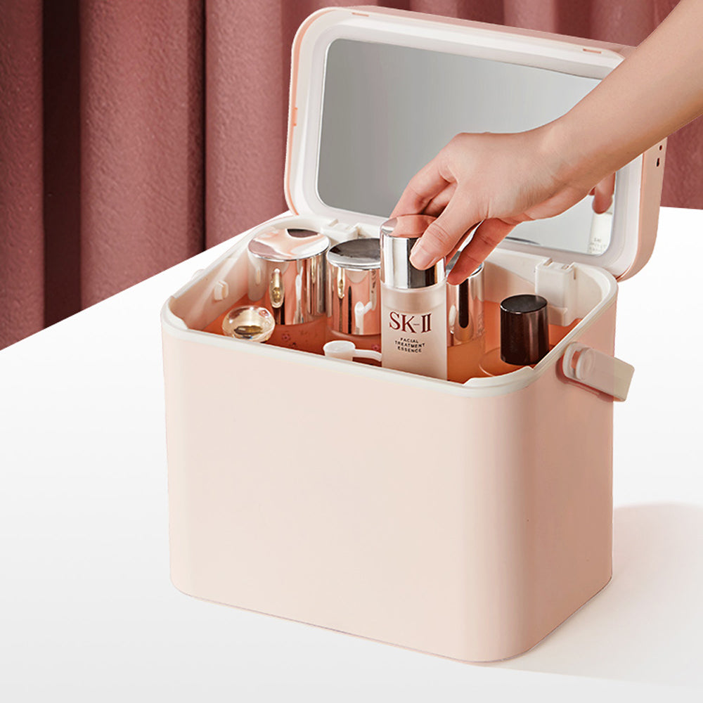 Q1012706 휴대용 화장품 수납박스 정리함 먼지방지 LED 미러 메이크업 보관대