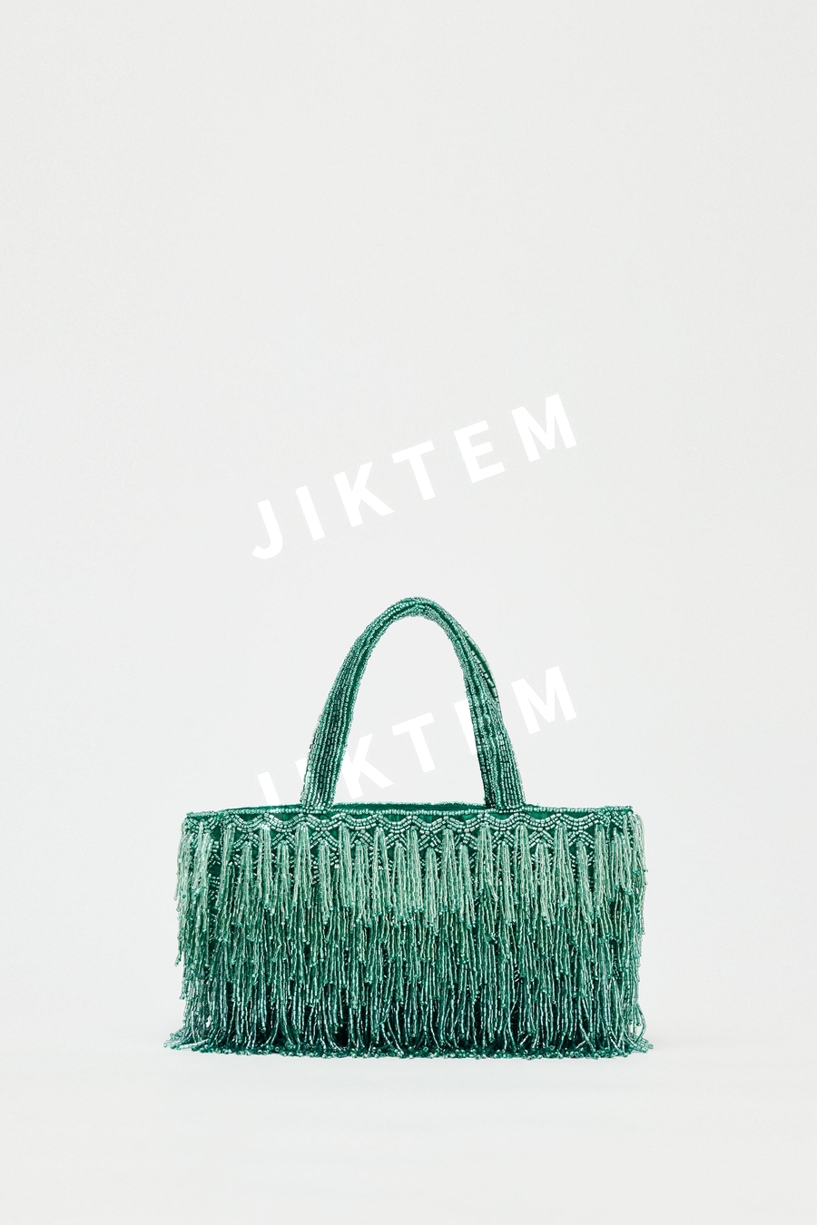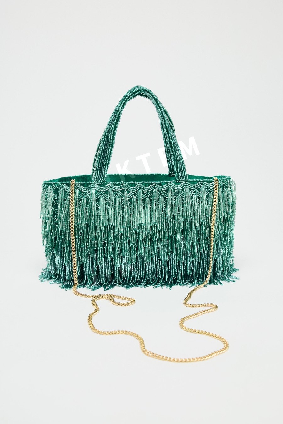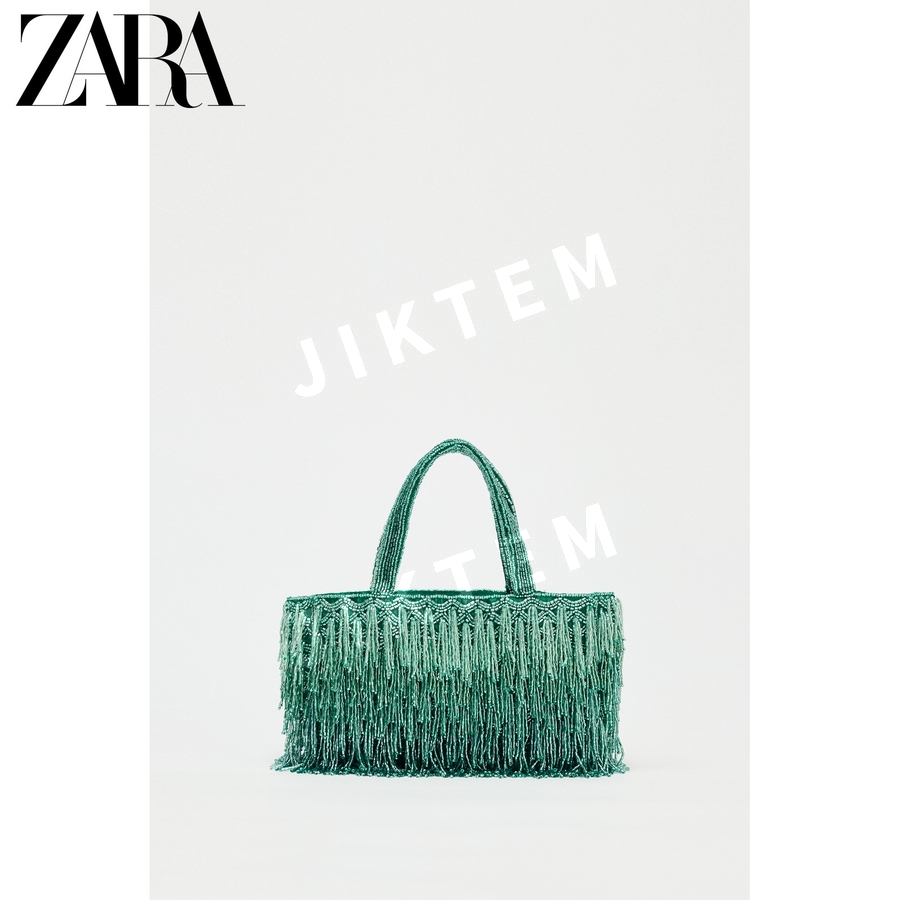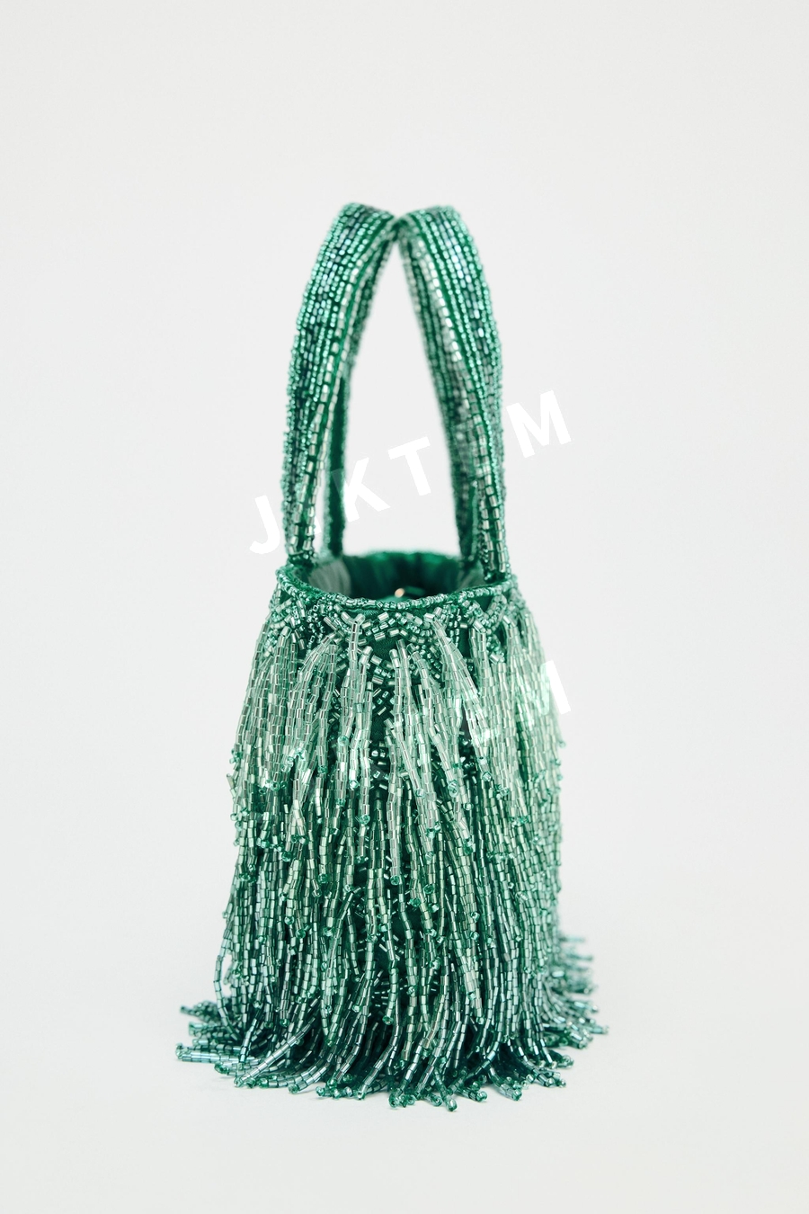 ZARA 정품 구슬 수슬 그린 핸드백 쇼퍼백 크로스백 JIKTEM BW5052421