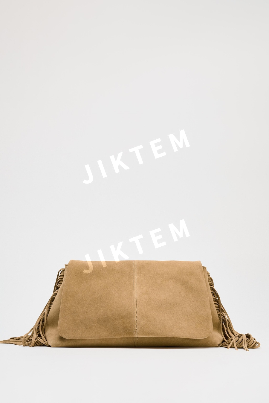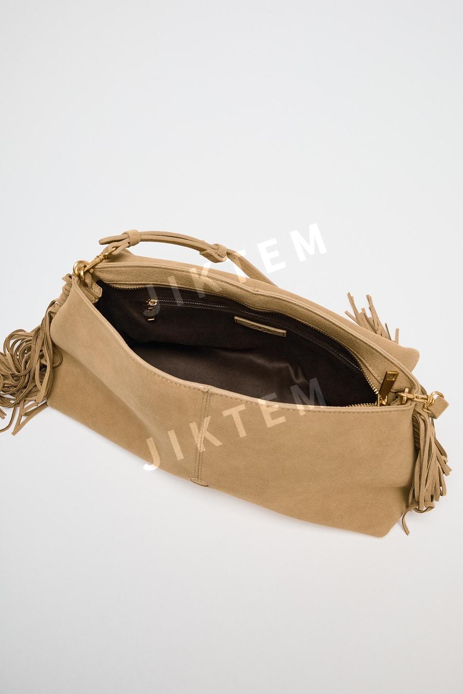 ZARA 정품 스웨이드 수술장식 크로스 바디백 숄더백 대용량 JIKTEM BW5052411